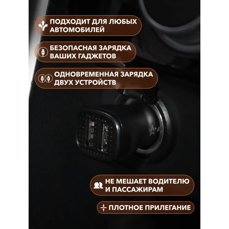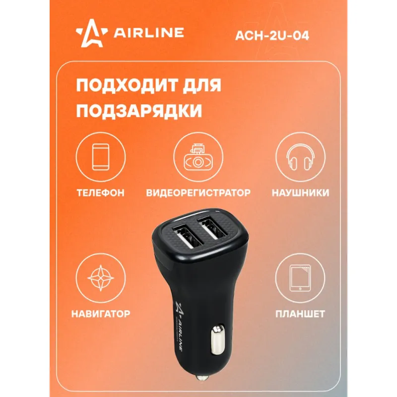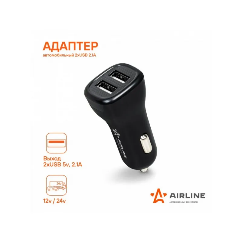 Адаптер автомобильный 2хUSB 2.1А, 12/24В Описание: Превратите ваш автомобильный прикуриватель в многофункциональное зарядное устройство с помощью автомобильного адаптера USB AIRLINE ACH-2U-04 12/24В! Этот компактный и эффективный адаптер идеально подходит для любого автомобиля, обеспечивая надежное зарядное устройство для всех ваших портативных устройств. Просто вставьте его в гнездо прикуривателя вашего автомобиля, и он будет готов к использованию, подключите зарядку для телефона к адаптеру. Наше зарядное устройство подходит для всех моделей iPhone и Android, и обеспечивает быструю зарядку вашего телефона, когда это необходимо. Адаптер в прикуриватель - это идеальный и практичный подарок, так как он подходит для любого автомобиля и будет очень полезен и позволит зарядить телефон в пути прямо в автомобиле. Подарите адаптер автовладельцу, мужу, другу, жене, на 23 февраля, 8 марта, новый год. В линейке AIRLINE, вы найдете широкий ассортимент высококачественных автотоваров для вашего автомобиля автомобильные адаптеры, автомобильные адаптеры с функцией быстрой зарядки или разветвители гнезда прикуривателя. Мы гарантируем качество и надежность наших товаров. Характеристики: Артикул: ACH-2U-04 Напряжение питания, В: 12/24 Выход USB: 5В, 2.1А (общ.) Комплектация: Адаптер - 1 шт Коробка - 1 шт Гарантия: от 1 года.