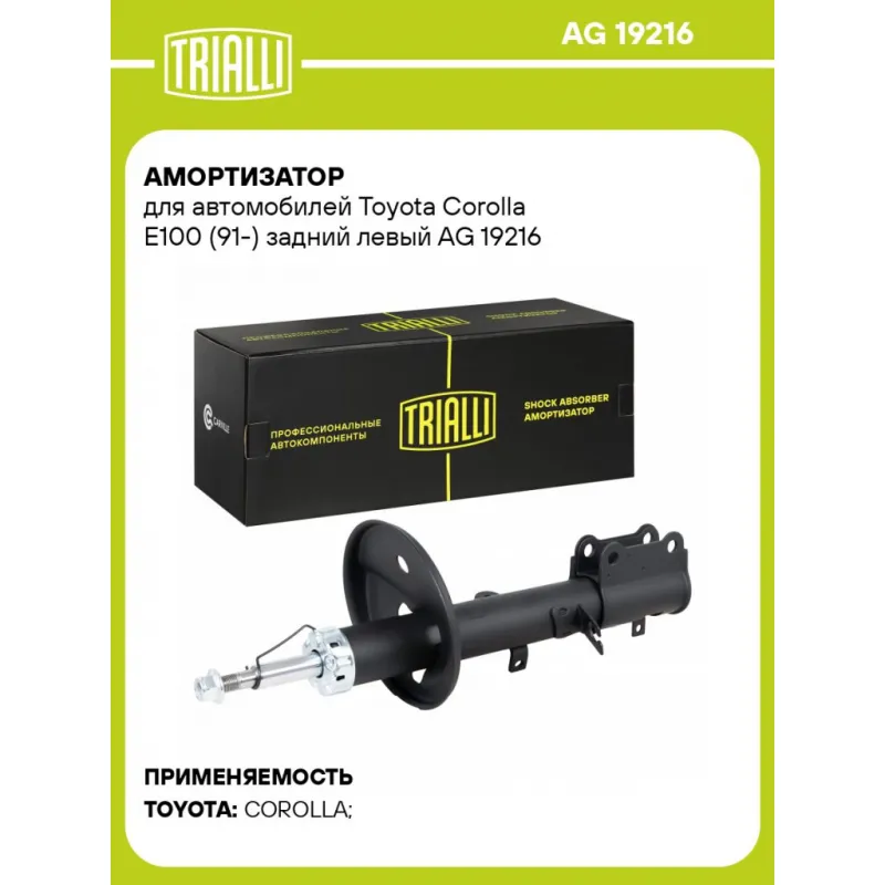 Амортизатор для автомобилей Toyota Corolla E100 (91-) задний левый Характеристики: Артикул: AG 19216 OEM номера: 4854002120, 4854009221, 4854012510, 4854012520, 4854012550, 4854012720, 485401A180, 48540A9060, 48540-12490, 4854019225, 4854019226, 4854019265, 4854019285, 485401A120, 485401A170, 4854012730, 4854012770, 4854012830, 4854019165, 4854019185, 4854019205 Ход штока, мм: 192 Ось (сторона установки): Сзади, слева Тип амортизатора: Двухтрубный, гидравлический Вид амортизатора: Масляный с газовым подпором низкого давления Тип верхнего крепления: Шток Тип нижнего крепления: Скоба Диаметр корпуса, мм: 48,5 Диаметр штока, мм: 20 Размер резьбы штока: M14x1,5 Присоединительная длина 1, мм: 377 Присоединительная длина 2, мм: 569 Сопутствующий товар: Амортизаторы: AG 19417, AG 19168, AG 19369, AG 19182, AG 19381 Товарная линейка: BLACK Парный товар: AG 19417 Количество на автомобиль: 1 Дополнительная информация: Упаковка изделия может отличаться от представленной на фото Гарантийный срок: 2 года/60 000 км Комплектация: Амортизатор задний - 1 шт Гайка крепежная - 1 шт Гарантия: от 1 года.