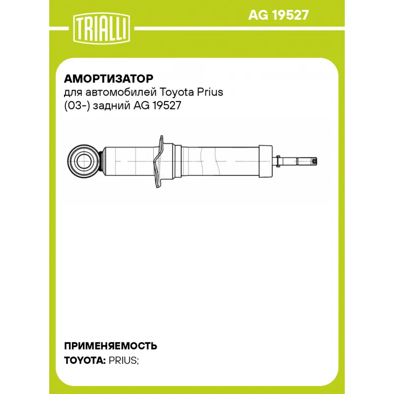 Амортизатор для автомобилей Toyota Prius (03-) задний Характеристики: Артикул: AG 19527 OEM номера: 4853002600C, 4853002650B, 4853002690, 4853002700, 4853002770, 4853012A10, 4853049745, 4853080140, 4853080266A, 4853080442, 4853012D90, 4853047040, 4853047041, 4853047061, 4853049395, 4853049735 Ход штока, мм: 165 Ось (сторона установки): Сзади, слева/справа Тип амортизатора: Двухтрубный, гидравлический Вид амортизатора: Масляный с газовым подпором низкого давления Тип верхнего крепления: Шток Тип нижнего крепления: Проушина/сайлентблок Диаметр корпуса, мм: 45 Диаметр штока, мм: 12,5 Размер резьбы штока: M12x1,25 Присоединительная длина 1, мм: 313 Присоединительная длина 2, мм: 478 Сопутствующий товар: Амортизаторы: AG 19186, AG 19385 Товарная линейка: BLACK Количество на автомобиль: 2 Дополнительная информация: Упаковка изделия может отличаться от представленной на фото Гарантийный срок: 2 года/60 000 км Комплектация: Амортизатор задний - 1 шт Гайка крепежная - 1 шт Гарантия: от 1 года.
