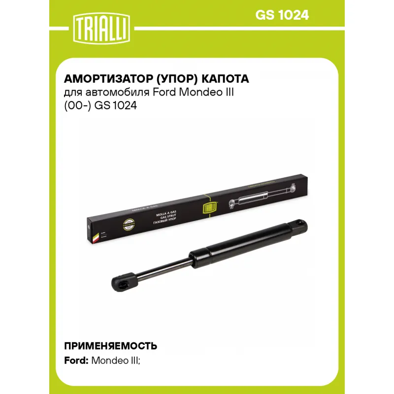 Амортизатор (упор) капота для автомобиля Ford Mondeo III (00-) Характеристики: Артикул: GS 1024 OEM номера: 1120812, 1S7116C826AD, 1117690 Товарная линейка: BLACK Количество на автомобиль: 2 Гарантийный срок: 2 года / 60 000 км Длина в свободном состоянии: 250 Длина в сжатом состоянии: 175 Ход поршня: 75 Усилие в точке P3: 660 Подходит для авто: Ford Mondeo III (00-) Для проверки применяемости отправьте VIN автомобиля через вкладку "Есть вопросы о товаре?" Комплектация: Амортизатор (упор) капота - 1 шт Гарантия: от 1 года.