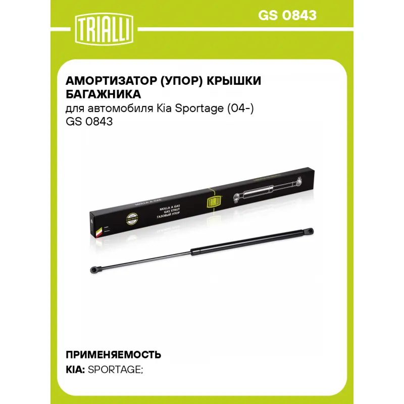 Амортизатор (упор) крышки багажника для автомобиля Kia Sportage (04-) Характеристики: Артикул: GS 0843 OEM номера: 81780-1F010, 81770-1F010 Товарная линейка: BLACK Количество на автомобиль: 2 Гарантийный срок: 2 года / 60 000 км Длина в свободном состоянии: 564 Длина в сжатом состоянии: 342 Ход поршня: 222 Усилие в точке P3: 560... Читать полностью →