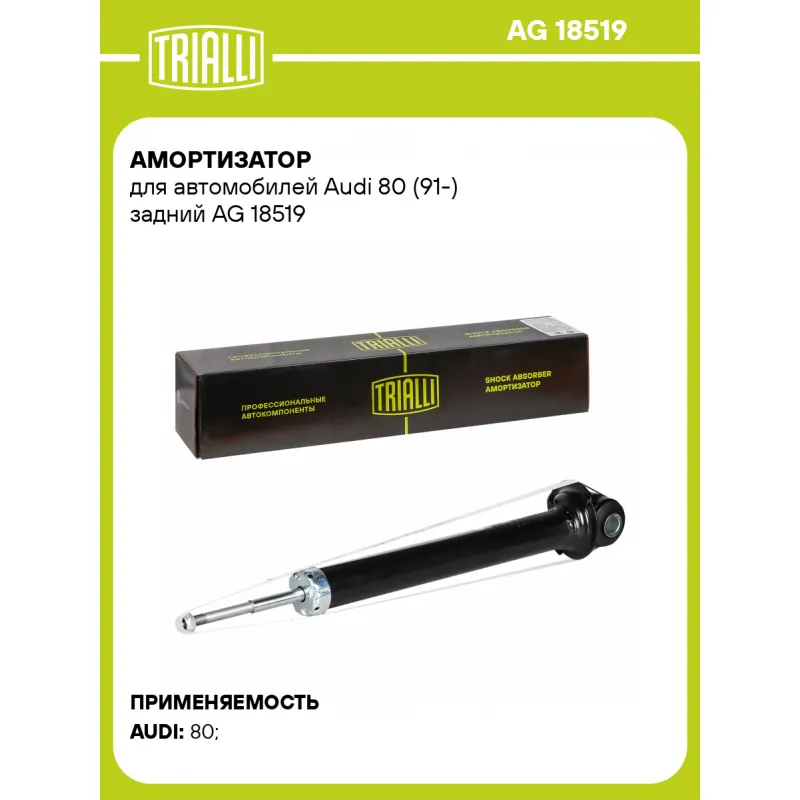 Амортизатор для автомобилей Audi 80 (91-) задний Описание: Амортизатор AG 18519 бренда TRIALLI – это устройство для гашения колебаний (демпфирования) и поглощения толчков и ударов, действующих на раму. Особенности AG 18519: - Вид – Масляный с газовым подпором низкого давления; - Тип – Двухтрубный, гидравлический; Для крепления к деталям кузова или подвески используются крепления: верхнее Шток M10x1.25; и нижнее Проушина/сайлентблок. Совместим с: AUDI 80.Подбор по VIN-номеру вашего автомобиля - через кнопку 'Задать вопрос'. Специалист проверит применяемость и ответит вам. Преимущества: - Инновационная технология производства; - Контроль качества каждой позиции по чертежам и с помощью 3D модели; - Сальник NOK; - Высокоэффективная система проектирования; - Гарантия до двух лет или 60 000 км пробега; Амортизаторы автомобильные существенно влияют на комфорт вождения, сокращая вибрации от неровностей дороги, что делает поездку более плавной и приятной. Регулярное и своевременное обслуживание амортизаторов помогут продлить их срок службы и обеспечить надёжную работу. Характеристики: Артикул: AG 18519 OEM номера: 8A0513029G, 8A0513029K, 8A5413029F, 8A5513029E, 8A5513029F, 8A5513029P, 8A9513029D, 8A9513029E, 8A9513029M, 8A9513029N Товарная линейка: BLACK Количество на автомобиль: 2 Вид амортизатора: Масляный с газовым подпором низкого давления Тип верхнего крепления: Шток Тип нижнего крепления: Проушина/сайлентблок Диаметр корпуса, мм: 39 Диаметр штока, мм: 12.5 Ход штока, мм: 193 Размер резьбы штока: M10x1.25 Тип амортизатора: Двухтрубный, гидравлический Ось (сторона установки): Сзади, слева/справа Дополнительная информация: Упаковка изделия может отличаться от представленной на фото Присоединительная длина 2, мм: 557 Присоединительная длина 1, мм: 364 Гарантийный срок: 2 года/60 000 км Комплектация: Гайка крепежная - 1 шт Амортизатор задний - 1 шт Гарантия: от 1 года.
