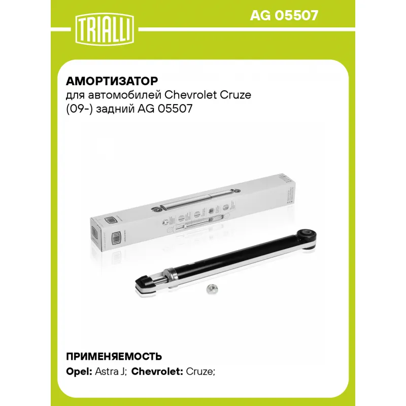 Амортизатор для автомобилей Chevrolet Cruze (09-) задний Описание: Амортизатор AG 05507 бренда TRIALLI – это устройство для гашения колебаний (демпфирования) и поглощения толчков и ударов, действующих на раму. Особенности AG 05507: - Вид – Масляный с газовым подпором низкого давления; - Тип – Двухтрубный, гидравлический; Для крепления к деталям кузова или подвески используются крепления: верхнее Шток M10x1.5; и нижнее Проушина/сайлентблок. Совместим с: CHEVROLET CRUZE, OPEL ASTRA.Подбор по VIN-номеру вашего автомобиля - через кнопку 'Задать вопрос'. Специалист проверит применяемость и ответит вам. Преимущества: - Инновационная технология производства; - Контроль качества каждой позиции по чертежам и с помощью 3D модели; - Сальник NOK; - Высокоэффективная система проектирования; - Гарантия до двух лет или 60 000 км пробега; Амортизаторы автомобильные существенно влияют на комфорт вождения, сокращая вибрации от неровностей дороги, что делает поездку более плавной и приятной. Регулярное и своевременное обслуживание амортизаторов помогут продлить их срок службы и обеспечить надёжную работу. Характеристики: Артикул: AG 05507 OEM номера: 13329528, 13345954, 13402952, 13332639, 13279251, 13412146, 13279263, 13315242, 4 36 530, 4 36 544, 315482, 13279266, 0436543, 13332640, 0436528, 13279260, 13412142, 13329527, 13412144 Товарная линейка: BLACK Количество на автомобиль: 2 Вид амортизатора: Масляный с газовым подпором низкого давления Тип верхнего крепления: Шток Тип нижнего крепления: Проушина/сайлентблок Диаметр корпуса, мм: 38,5 Диаметр штока, мм: 12,5 Ход штока, мм: 260 Размер резьбы штока: M10x1.5 Тип амортизатора: Двухтрубный, гидравлический Ось (сторона установки): Сзади, слева/справа Дополнительная информация: Упаковка изделия может отличаться от представленной на фото Присоединительная длина 2, мм: 653 Сопутствующий товар: Опоры передних стоек: SA 0558; SA 0563 Присоединительная длина 1, мм: 393 Сопутствующий товар: Амортизаторы: AG 05160; AG 05170; AG 05361; AG 05371; AG 21160; AG 21361 Гарантийный срок: 2 года/60 000 км Подходит для авто: Opel Astra J (10-), Astra J (10-) Chevrolet Cruze (09-) Для проверки применяемости отправьте VIN автомобиля через вкладку "Есть вопросы о товаре?" Комплектация: Гайка крепежная - 1 шт Шарнир резинометаллический - 1 шт Амортизатор задний - 1 шт Гарантия: от 1 года.