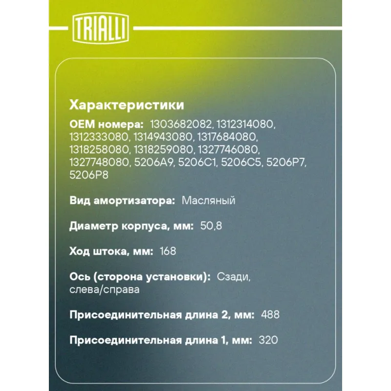 | Дополнительная информация | Для а/м грузоподъёмностью более 1500 кг |