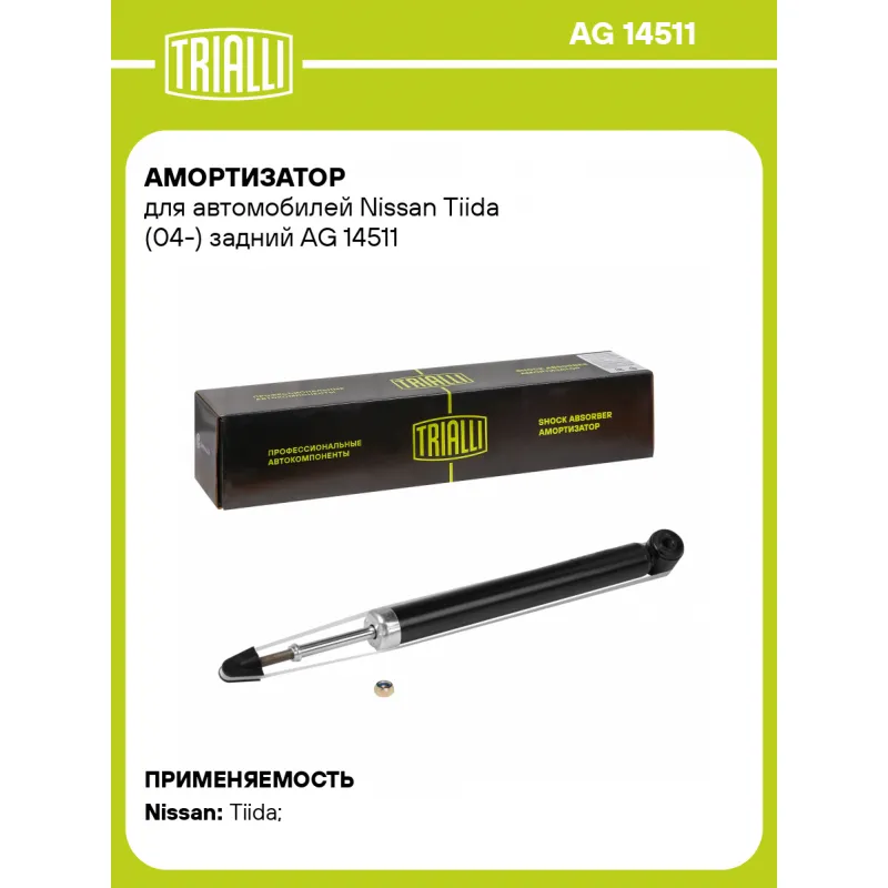 Амортизатор для автомобилей Nissan Tiida (04-) задний Описание: Амортизатор AG 14511 бренда TRIALLI – это устройство для гашения колебаний (демпфирования) и поглощения толчков и ударов, действующих на раму. Особенности AG 14511: - Вид – Масляный с газовым подпором низкого давления; - Тип – Двухтрубный, гидравлический; Для крепления к деталям кузова или подвески используются крепления: верхнее Шток M10x1.25; и нижнее Проушина/сайлентблок. Совместим с: NISSAN TIIDA.Подбор по VIN-номеру вашего автомобиля - через кнопку 'Задать вопрос'. Специалист проверит применяемость и ответит вам. Преимущества: - Инновационная технология производства; - Контроль качества каждой позиции по чертежам и с помощью 3D модели; - Сальник NOK; - Высокоэффективная система проектирования; - Гарантия до двух лет или 60 000 км пробега; Амортизаторы автомобильные существенно влияют на комфорт вождения, сокращая вибрации от неровностей дороги, что делает поездку более плавной и приятной. Регулярное и своевременное обслуживание амортизаторов помогут продлить их срок службы и обеспечить надёжную работу. Характеристики: Артикул: AG 14511 OEM номера: 56200ED002, 56200ED00A, 56200EE90A, 56200EF80D, 56200EF80E, 56200EM01A, 56200EM20A, 56200EM30C, 56200EW80C, 56200EX50A, 56210ED001, 56210ED002, 56210ED00A, 56210ED025, 56210EE90A, 56210EF80D, 56210EF80E, 56210EM01A, 56210EM20A, 56210EM30C, 56210EW80C, 56210EW90D, 56210EX50A, E6210EC80A, E6210ED00A, E6210EE90A, E6210EM01A, E6210EM20A, E6210EM30C Товарная линейка: BLACK Количество на автомобиль: 2 Вид амортизатора: Масляный с газовым подпором низкого давления Тип верхнего крепления: Шток Тип нижнего крепления: Проушина/сайлентблок Диаметр корпуса, мм: 38 Диаметр штока, мм: 12,5 Ход штока, мм: 158 Размер резьбы штока: M10x1.25 Тип амортизатора: Двухтрубный, гидравлический Ось (сторона установки): Сзади, слева/справа Дополнительная информация: Упаковка изделия может отличаться от представленной на фото Присоединительная длина 2, мм: 534 Присоединительная длина 1, мм: 376 Сопутствующий товар: Амортизаторы: AG 14167; AG 14368 Гарантийный срок: 2 года/60 000 км Подходит для авто: Nissan Tiida (04-) Для проверки применяемости отправьте VIN автомобиля через вкладку "Есть вопросы о товаре?" Комплектация: Амортизатор задний - 1 шт Гайка крепежная - 1 шт Шарнир резинометаллический - 1 шт Гарантия: от 1 года.