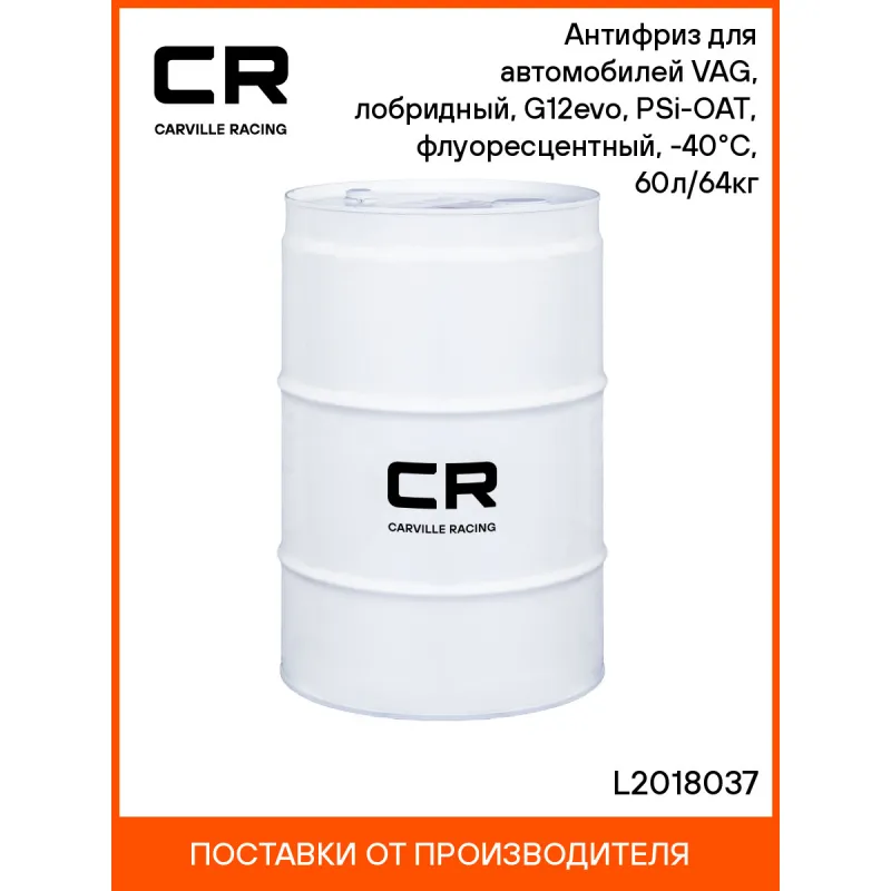 Антифриз для автомобилей VAG, лобридный, G12evo, PSi-OAT, флуоресцентный, -40°С, 60л/64кг Описание: Флуоресцентный лобридный антифриз премиум класса бренда Carville Racing в фиолетовом цвете обеспечивает надежную защиту системы охлаждения вашего автомобиля от негативных воздействий и обеспечивает стойкость деталей техники к высоким температурам. Охлаждающая низкозамерзающая жидкость Антифриз CARVILLE RACING лобридный изготовлена по PSi-OAT технологии (Phosphate Silicate Organic Acid Technology), на основе моноэтиленгликоля высшего сорта и комплекса карбоксилатных, силикатных и фосфатных ингибиторов, в соответствии с требованиями спецификации концерна Volkswagen TL 774-L (G12evo). Полностью совместима с качественными охлаждающими жидкостями G11, G12, G12+, G12++, G13. Рекомендуется к применению в системах охлаждения автомобилей Audi, Skoda, Volkswagen, Porsche, Seat, Bentley, Bugatti, Lamborghini и многих других европейских автопроизводителей. Обеспечивает эффективное охлаждение двигателя, защищает от коррозии, кавитации, вспенивания и образования накипи, не агрессивна к материалам патрубков и уплотнителей. Совместим с элементами из пластика, эластомеров или резины. Позволяет увеличить время эксплуатации термостата и водяного насоса. Это эффективное решение для автомобильных систем охлаждения в условиях экстремальных эксплуатационных нагрузок в любое время года зимнее, осеннее, весеннее и летнее. Незаменимый автотовар обеспечивает идеальную защиту от коррозии и перегрева в самых сложных условиях эксплуатации, что делает его отличным выбором для автовладельцев. Характеристики: Артикул: L2018037 OEM номера: G12E100M2 Особенности конструкции: Флуоресцентный краситель – индикация утечек в ультрафиолетовом свете Цвет: Розовый Тип: Лобридный антифриз Состав: Этиленгликоль, пакет многофункциональных присадок, вода деминерализованная, противопенные добавки, краситель. Не содержит метанол и глицерин Срок эксплуатации: В соответствии с инструкцией по эксплуатации автомобиля. Не менее 5 лет или 250 000 км Гарантийный срок хранения: 5 лет Соответствие требованиям/стандартам: ASTM D3306, ASTM D4985, GB 29743-2013 (LEC-II) Спецификации: VAG TL-774 L = G12evo, VAG TL-774 J = G13 Температура начала кристаллизации, °С: минус 40 Температура начала кипения, °C: плюс 110 Температура начала кипения при 2Атм, °С: плюс 127 Температура замерзания, °С: минус 43 Объём / Нетто / Брутто: 60л / 64кг / 68кг Применение: Продукт готов к применению. Пожаровзрывобезопасен Технология производства: PSi-OAT Водородный показатель (рН): 8.2 Флуоресцентный краситель: Да Цвет: Фиолетовый Комплектация: Жидкость охлаждающая - 1 шт Гарантия: от 1 года.