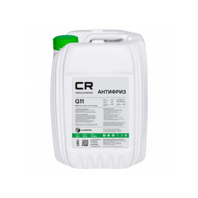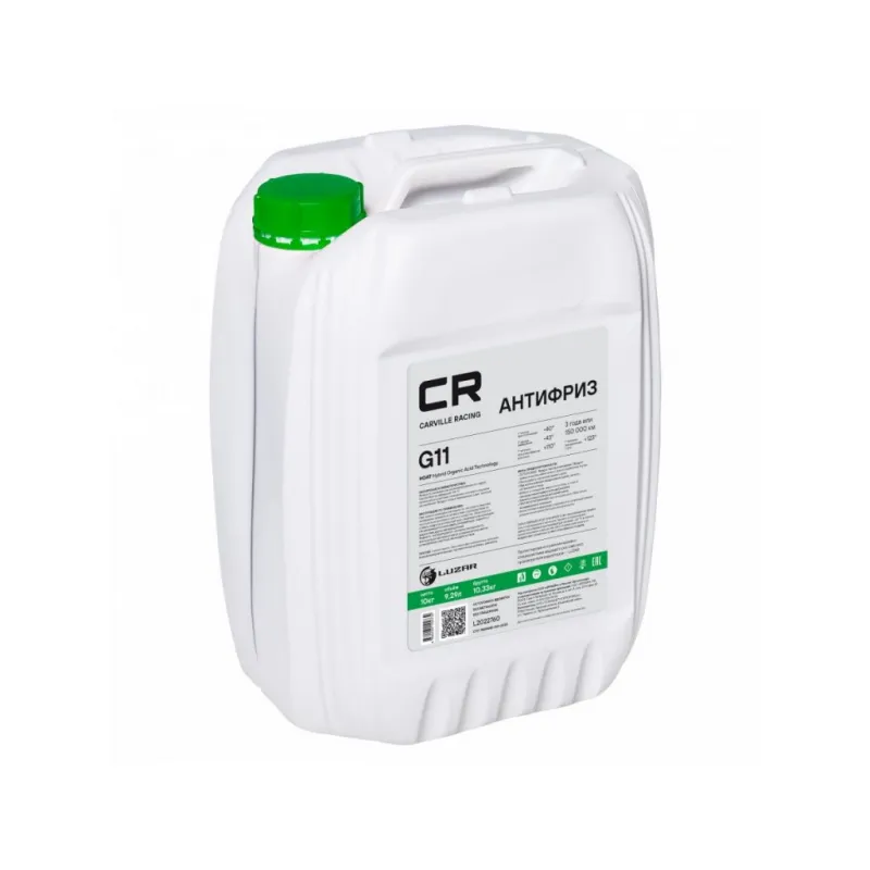 Антифриз G11 HOAT -40°С, зеленый, готовый к применению, 10кг/9,35л Описание: Гибридный антифриз премиум класса бренда Carville Racing безупречная защита двигателя от перегрева и коррозии. Охлаждающая жидкость G11 в зеленом цвете обеспечивает надежную защиту системы охлаждения вашего автомобиля от негативных воздействий и обеспечивает стойкость деталей техники к высоким температурам. HOAT (Hybrid Organic Acid Technology) на основе этиленгликоля высшего сорта, комплекса силикатных присадок и карбоновых солей, в соответствии с требованиями спецификации Volkswagen TL 774-С (G11). Прозрачный корпус расширительного бачка и яркий флуоресцентный краситель позволяет обеспечить визуальный контроль уровня заливки автохимиката и индикацию утечек. Защитный антифриз подходит для сервисного обслуживания и дальнейшей эксплуатации любых марок машин, в том числе с бензиновым двигателем, в соответствии со спецификацией. Зеленый цвет делает продукт отличительным от других автотоваров и облегчает контроль за уровнем залива. Характеристики: Артикул: L2022760 OEM номера: 0009890825, 0009890825S1, 0710000200, 0710000400, 1047035, 1940656, 5016436, 5016437, 5016438, 81229407181, 81229407454, 81229407755, 82141467704, 83192179987, 83192211191, 83192211195, 83192211358, 83192211913, 83192304069, 83512355290, 88888400010082, 90297545, 93740140, 93740141, 9890825, A0009890825, A000989082510, A000989082511, G0011V8A1, G011A8CA1, G011V8BA1 Цвет: Зеленый Тип: Гибридный антифриз Объём / Нетто / Брутто: 9,29л / 10кг / 10,33кг Технология производства: HOAT (Hybrid Organic Acid Technology) Флуоресцентный краситель: Нет Срок эксплуатации: 3 года или 150 000 км Гарантийный срок хранения: 5 лет Соответствие требованиям/стандартам: ASTM D3306, JIS K2234, SAE J1034 Спецификации: VAG TL-774 C (G 11), Deutz DQC CA-14, Alfa Romeo / Fiat-Lancia / Lancia Fiat 9,55523, MAN 324 Typ NF, Chrysler MS-7170, Iveco standard 18-1830, Ford ESD-M97B49-A, General Motors, B 040 0240, Opel-GM GME L1301, Saturn, Volvo 1286083, BMW N 600.69.0, АВТОВАЗ TTM VAZ 1.97.717-97 Температура начала кристаллизации, °С: минус 40 Температура начала кипения, °C: плюс 110 Температура начала кипения при 2Атм, °С: плюс 123 Температура замерзания, °С: минус 43 Состав: Этиленгликоль, пакет многофункциональных присадок, вода деминерализованная, противопенные добавки, краситель. Не содержит метанол и глицерин Применение: Продукт готов к применению. Пожаровзрывобезопасен Водородный показатель (рН): 8.1 Комплектация: Жидкость охлаждающая - 1 шт Гарантия: от 1 года.