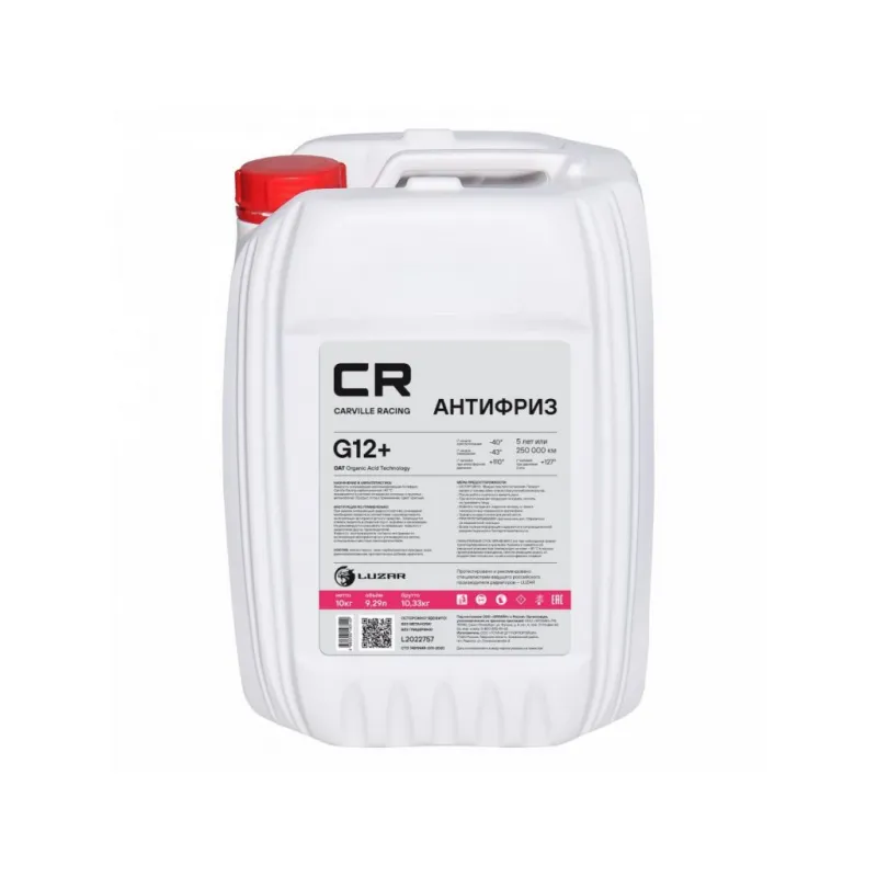 Антифриз G12+ OAT -40°С, красный, готовый к применению, 10кг/9,35л Описание: Карбоксилатный антифриз премиум класса бренда Carville Racing безупречная защита двигателя от перегрева и коррозии. Охлаждающая жидкость G12 в красном цвете обеспечивает надежную защиту системы охлаждения вашего автомобиля от негативных воздействий и обеспечивает стойкость деталей техники к высоким температурам. Созданная по самой современной технологии производства OAT-технологии (Organic Acid Technology), на основе этиленгликоля высшего сорта и комплекса карбоксилатных присадок, в соответствии с требованиями спецификации Volkswagen TL 774-F (G12+). Прозрачный корпус расширительного бачка и яркий краситель позволяет обеспечить визуальный контроль уровня заливки автохимиката и индикацию утечек. Защитный антифриз подходит для сервисного обслуживания и дальнейшей эксплуатации любых марок машин, в том числе с бензиновым двигателем, в соответствии со спецификацией. Позволяет увеличить время эксплуатации термостата и водяного насоса. Характеристики: Артикул: L2022757 OEM номера: 1020121, 1047034, 1047036, 1057614, 1057615, 1057616, 1113805, 1129700, 1188500, 1209795, 1209799, 1209800, 1222110, 1222116, 1326830, 1333754, 1336797, 1381023, 1381025, 1381076, 1940663, 1940678, 83192211662, 83510406720, 88888100010082, 93165162, 93170402, 93742646, 93742647, 9437600, 9735K0, 9735K1, 9735Y5, 9891625, A0009891625, B715110, G012A8DA1, G012A8FA1, G012A8FM1, JLM209722 Цвет: Красный Тип: Карбоксилатный антифриз Объём / Нетто / Брутто: 9,29л / 10кг / 10,33кг Технология производства: OAT (Organic Acid Technology) Флуоресцентный краситель: Нет Срок эксплуатации: 5 лет или 250 000 км Гарантийный срок хранения: 5 лет Соответствие требованиям/стандартам: ASTM D3306, SAE J 1034, BS 6580, NFR 15-601, KSM 2142 Спецификации: VAG TL 774-D (G12) / TL 774-F (G12+), Mercedes-Benz MB-Approval 325.3, Ford WSSM97B44-D, GM Chevrolet, GM 6277M, Opel GMW 3420, Great Wall (GWM), HAVAL, Renault-Nissan 41-01-001/--S Type D, АВТОВАЗ, Mitsubishi MHI, Liebherr MD1-36-130, Deutz, Caterpillar, Cummins CES 14439 / IS N14, Isuzu, Komatsu 07.892, MTU, MAN 324 Typ SNF, DAF 74002, Renault Trucks, Volvo Penta/Trucks/Bus/Construction, КАМАЗ, ЛиАЗ. Температура начала кристаллизации, °С: минус 40 Температура начала кипения, °C: плюс 110 Температура начала кипения при 2Атм, °С: плюс 127 Температура замерзания, °С: минус 43 Состав: Этиленгликоль, пакет многофункциональных присадок, вода деминерализованная, противопенные добавки, краситель. Не содержит метанол и глицерин Применение: Продукт готов к применению. Пожаровзрывобезопасен Водородный показатель (рН): 8.3 Комплектация: Жидкость охлаждающая - 1 шт Гарантия: от 1 года.