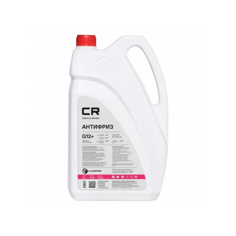 Антифриз G12+ OAT -40°С, красный, готовый к применению, 5кг/4.67л Описание: Карбоксилатный антифриз премиум класса бренда Carville Racing безупречная защита двигателя от перегрева и коррозии. Охлаждающая жидкость G12 в красном цвете обеспечивает надежную защиту системы охлаждения вашего автомобиля от негативных воздействий и обеспечивает стойкость деталей техники к высоким температурам. Созданная по самой современной технологии производства OAT-технологии (Organic Acid Technology), на основе этиленгликоля высшего сорта и комплекса карбоксилатных присадок, в соответствии с требованиями спецификации Volkswagen TL 774-F (G12+). Прозрачный корпус расширительного бачка и яркий краситель позволяет обеспечить визуальный контроль уровня заливки автохимиката и индикацию утечек. Защитный антифриз подходит для сервисного обслуживания и дальнейшей эксплуатации любых марок машин, в том числе с бензиновым двигателем, в соответствии со спецификацией. Позволяет увеличить время эксплуатации термостата и водяного насоса. Характеристики: Артикул: L2022756 OEM номера: 1020121, 1047034, 1047036, 1057614, 1057615, 1057616, 1113805, 1129700, 1188500, 1209795, 1209799, 1209800, 1222110, 1222116, 1326830, 1333754, 1336797, 1381023, 1381025, 1381076, 1940663, 1940678, 83192211662, 83510406720, 88888100005082, 93165162, 93170402, 93742646, 93742647, 9437600, 9735K0, 9735K1, 9735Y5, 9891625, A0009891625, B715110, G012A8DA1, G012A8FA1, G012A8FM1, JLM209722 Цвет: Красный Тип: Карбоксилатный антифриз Объём / Нетто / Брутто: 4,64л / 5кг / 5,25кг Технология производства: OAT (Organic Acid Technology) Флуоресцентный краситель: Нет Срок эксплуатации: 5 лет или 250 000 км Гарантийный срок хранения: 5 лет Соответствие требованиям/стандартам: ASTM D3306, SAE J 1034, BS 6580, NFR 15-601, KSM 2142 Спецификации: VAG TL 774-D (G12) / TL 774-F (G12+), Mercedes-Benz MB-Approval 325.3, Ford WSSM97B44-D, GM Chevrolet, GM 6277M, Opel GMW 3420, Great Wall (GWM), HAVAL, Renault-Nissan 41-01-001/--S Type D, АВТОВАЗ, Mitsubishi MHI, Liebherr MD1-36-130, Deutz, Caterpillar, Cummins CES 14439 / IS N14, Isuzu, Komatsu 07.892, MTU, MAN 324 Typ SNF, DAF 74002, Renault Trucks, Volvo Penta/Trucks/Bus/Construction, КАМАЗ, ЛиАЗ. Температура начала кристаллизации, °С: минус 40 Температура начала кипения, °C: плюс 110 Температура начала кипения при 2Атм, °С: плюс 127 Температура замерзания, °С: минус 43 Состав: Этиленгликоль, пакет многофункциональных присадок, вода деминерализованная, противопенные добавки, краситель. Не содержит метанол и глицерин Применение: Продукт готов к применению. Пожаровзрывобезопасен Водородный показатель (рН): 8.3 Комплектация: Жидкость охлаждающая - 1 шт Гарантия: от 1 года.