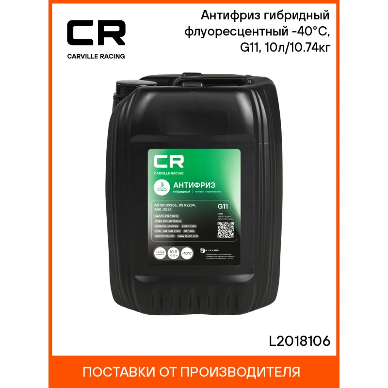 Антифриз гибридный флуоресцентный -40°С, G11, 10л/10.74кг Описание: Флуоресцентный антифриз премиум класса от бренда Carville Racing - безупречная защита двигателя от перегрева и коррозии. Охлаждающая жидкость G11 в зеленом цвете обеспечивает надежную защиту системы охлаждения вашего автомобиля от негативных воздействий и обеспечивает стойкость деталей техники к высоким температурам. Созданная по самой современной лобридной технологии производства HOAT (Hybrid Organic Acid Technology) охлаждающая жидкость в объеме. Не содержит метанол и глицерин. Прозрачный корпус расширительного бачка и яркий флуоресцентный краситель позволяет обеспечить визуальный контроль уровня заливки автохимиката и индикацию утечек в ультрафиолетовом свете, что облегчает процесс его использования. Защитный антифриз подходит для сервисного обслуживания и дальнейшей эксплуатации любых марок машин, в том числе с бензиновым двигателем, в соответствии со спецификацией, в том числе таких как Deutz Alfa Romeo, Fiat-Lancia, Iveco, Ford, Opel, Volvo, BMW, Lada, Audi, Porsche, Seat, Skoda, Volkswagen и других автомобилей. Используется в соответствии с инструкцией по эксплуатации автомобиля (не менее 150 000 километров или трех лет). Совместим с элементами из пластика, эластомеров или резины. Позволяет увеличить время эксплуатации термостата и водяного насоса. Защитите ваш автомобиль от перегрева и коррозии уже сегодня с универсальным автотоваром - антифризом G11! Это эффективное решение для автомобильных систем охлаждения в условиях экстремальных эксплуатационных нагрузок в любое время года: зимнее, осеннее, весеннее и летнее. Зеленый цвет делает продукт отличительным от других автотоваров и облегчает контроль за уровнем залива. Незаменимый автотовар обеспечивает идеальную защиту от коррозии и перегрева в самых сложных условиях эксплуатации, что делает его отличным выбором для автовладельцев. Не рискуйте безопасностью эксплуатации своего автомобиля, выбирайте антифриз G11 для надежной защиты системы охлаждения вашей машинки. Товар от производителя. Характеристики: Артикул: L2018106 OEM номера: 83512355290, 83192304069, 93740140, 93740141, A000989082510, A000989082511, 88888400010082, 82141467704, 5016438, 1047035, 0009890825, 1940656, G011A8CA1, 5016436, 5016437, A0009890825, 9890825, 0009890825S1, 81229407181, 81229407454, 81229407755, 83192211191, 83192179987, 83192211195, 83192211358, 83192211913, 90297545, G011V8BA1, G0011V8A1 Тип: Гибридный антифриз Срок эксплуатации: 3 года или 150 000 км Гарантийный срок хранения: 5 лет Соответствие требованиям/стандартам: ASTM D3306, JIS K2234, SAE J1034 Цвет: Зеленый Спецификации: VAG TL-774 C (G 11), Deutz DQC CA-14, Alfa Romeo / Fiat-Lancia / Lancia Fiat 9,55523, MAN 324 Typ NF, Chrysler MS-7170, Iveco standard 18-1830, Ford ESD-M97B49-A, General Motors, B 040 0240, Opel-GM GME L1301, Saturn, Volvo 1286083, BMW N 600.69.0, АВТОВАЗ TTM VAZ 1.97.717-97 Температура начала кристаллизации, °С: минус 40 Температура начала кипения, °C: плюс 110 Температура начала кипения при 2Атм, °С: плюс 123 Температура замерзания, °С: минус 43 Состав: Этиленгликоль, пакет многофункциональных присадок, вода деминерализованная, противопенные добавки, краситель. Не содержит метанол и глицерин Объём / Нетто / Брутто: 10л / 10,72кг / 11,05кг Применение: Продукт готов к применению. Пожаровзрывобезопасен Технология производства: HOAT (Hybrid Organic Acid Technology) Водородный показатель (рН): 8.1 Флуоресцентный краситель: Да Комплектация: Жидкость охлаждающая - 1 шт Гарантия: от 1 года.
