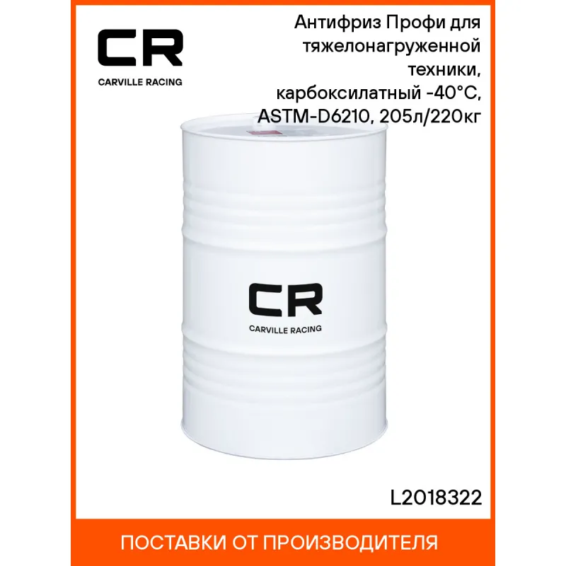 Антифриз Профи для тяжелонагруженной техники, карбоксилатный -40°С, ASTM-D6210, 205л/220кг Описание: Готовый к применению антифриз CARVILLE RACING ПРОФИ для тяжелонагруженной техники изготовлен по карбоксилатной технологии OAT (Organic Acid Technology) из этиленгликоля высочайшего качества и комплекса карбоксилатных присадок с добавлением нитритов и молибдатов. Не содержит фосфатов, силикатов, боратов, аминов. Предназначен для использования в системах охлаждения тяжелонагруженной техники и других теплообменных установках. Рекомендуется к использованию в системах охлаждения двигателей Cummins. Обеспечивает эффективное охлаждение двигателя, снижает эксплуатационные расходы и увеличивает время безотказной службы системы охлаждения. Срок эксплуатации 5 лет или до 600 000 км для магистральных грузовиков или до 12 000 моточасов для внедорожного оборудования. Характеристики: Артикул: L2018322 Цвет: Синий Тип: Карбоксилатный антифриз Состав: Этиленгликоль, вода деминерализованная, пакет карбоксилатных присадок с добавлением нитритов и молибдатов, противопенные присадки, краситель. Не содержит фосфатов, силикатов, боратов, аминов. Не содержит метанол и глицерин. Срок эксплуатации: 5 лет или 600000 км для магистральных грузовиков или 12000 моточасов Гарантийный срок хранения: 5 лет Соответствие требованиям/стандартам: ASTM D3306, ASTM D6210, ASTM D4985, SAE J1034 Спецификации: Cummins CES 14603 / 14439 DEUTZ DQCCB-14, KOMATSU AF-NAC / 07.892 – 2009, MAN 324 Type SNF, VOLVO 128 6083/002, LIEBHERR, WRITGEN BS 6580:2010, MTU MTL 5048, GM 6277M. Температура начала кристаллизации, °С: минус 40 Температура начала кипения, °C: плюс 110 Температура начала кипения при 2Атм, °С: плюс 127 Температура замерзания, °С: минус 43 Объём / Нетто / Брутто: 205л / 220кг / 236кг Применение: Продукт готов к применению. Пожаровзрывобезопасен Технология производства: OAT (Organic Acid Technology) с добавлением нитритов и молибдатов Флуоресцентный краситель: Нет Комплектация: Жидкость охлаждающая - 1 шт Гарантия: от 1 года.