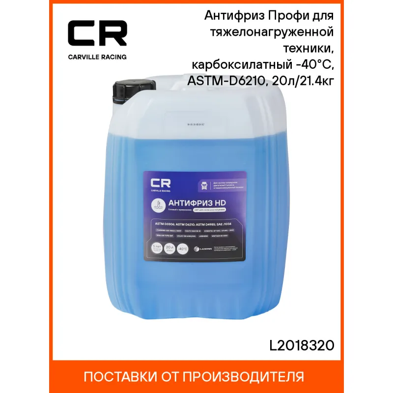 Антифриз Профи для тяжелонагруженной техники, карбоксилатный -40°С, ASTM-D6210, 20л/21.4кг Описание: Готовый к применению антифриз CARVILLE RACING ПРОФИ для тяжелонагруженной техники изготовлен по карбоксилатной технологии OAT (Organic Acid Technology) из этиленгликоля высочайшего качества и комплекса карбоксилатных присадок с добавлением нитритов и молибдатов. Не содержит фосфатов, силикатов, боратов, аминов. Рекомендуется к использованию в системах охлаждения тяжелонагруженной техники и других теплообменных установках и двигателей Cummins. Охлаждающая жидкость снижает эксплуатационные расходы и увеличивает время безотказной службы системы охлаждения. Срок эксплуатации 5 лет или до 600 000 км для магистральных грузовиков или до 12 000 моточасов для внедорожного оборудования. Совместим с элементами из пластика, эластомеров или резины. Позволяет увеличить время эксплуатации термостата и водяного насоса. Это эффективное решение в условиях экстремальных эксплуатационных нагрузок в любое время года зимнее, осеннее, весеннее и летнее. Незаменимый автотовар обеспечивает идеальную защиту от коррозии и перегрева в самых сложных условиях эксплуатации, что делает его отличным выбором для автовладельцев. Характеристики: Артикул: L2018320 Цвет: Синий Тип: Карбоксилатный антифриз Состав: Этиленгликоль, вода деминерализованная, пакет карбоксилатных присадок с добавлением нитритов и молибдатов, противопенные присадки, краситель. Не содержит фосфатов, силикатов, боратов, аминов. Не содержит метанол и глицерин. Срок эксплуатации: 5 лет или 600000 км для магистральных грузовиков или 12000 моточасов Гарантийный срок хранения: 5 лет Соответствие требованиям/стандартам: ASTM D3306, ASTM D6210, ASTM D4985, SAE J1034 Спецификации: Cummins CES 14603 / 14439 DEUTZ DQCCB-14, KOMATSU AF-NAC / 07.892 – 2009, MAN 324 Type SNF, VOLVO 128 6083/002, LIEBHERR, WRITGEN BS 6580:2010, MTU MTL 5048, GM 6277M. Температура начала кристаллизации, °С: минус 40 Температура начала кипения, °C: плюс 110 Температура начала кипения при 2Атм, °С: плюс 127 Температура замерзания, °С: минус 43 Объём / Нетто / Брутто: 20л / 21.4кг / 22.1кг Применение: Продукт готов к применению. Пожаровзрывобезопасен Технология производства: OAT (Organic Acid Technology) с добавлением нитритов и молибдатов Флуоресцентный краситель: Нет Комплектация: Жидкость охлаждающая - 1 шт Гарантия: от 1 года.