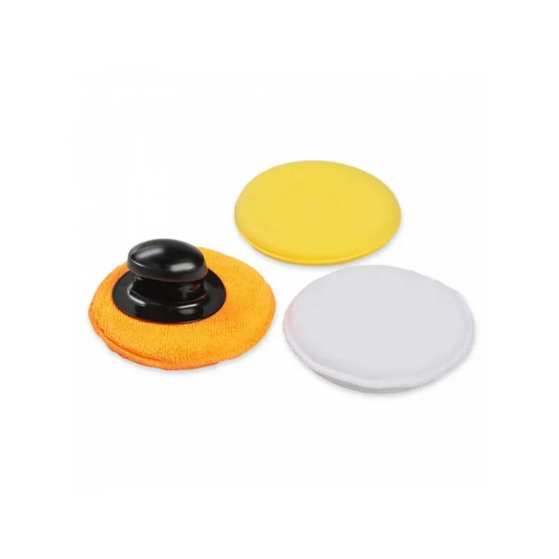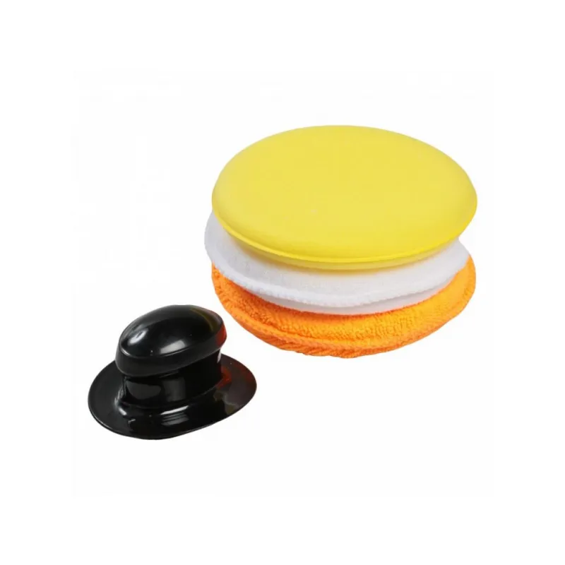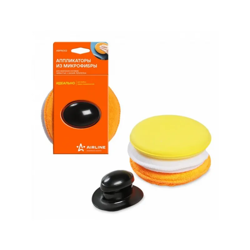 Аппликаторы из микрофибры для нанесения составов набор 3 шт. с ручкой (12,5*12,5 см) Описание: Аппликатор 3 шт для полировки и нанесения составов из микрофибры с держателем AIRLINE ABPN002 для всех видов поверхностей (12,5*12,5 см) выполнены из микрофибрового волокна и поролона. Применяется для нанесения составов и удаления пыли. Безопасен для любых поверхностей: лакокрасочные покрытия, стекла, пластик, кожа и пр. В комплекте: съемная пластиковая ручка, аппликатор из микрофибры и поролона, аппликатор из вспененного полиуретана, аппликатор из полиэстера и поролона. - Состав: 1 аппл.: микрофибра (80% полиэстер, 20% полиамид), поролон; 2 аппл.: 100% полиэстер, поролон; 3 аппл.: поролон.; - Можно использовать с влажными, сухими и моющим средствами; - Не повреждает лакокрасочное покрытие, подходит для полировки кузова, для стекол и зеркал; - Не оставляет царапин; - Чистота и качество уборки любой поверхности; - Тряпка-спонж для машины не оставляет после себя ворсинок и разводов. Набор аппликаторов для полировки автомобиля - отличный подарочный вариант в набор автомобилиста: мужчине и женщине, автолюбителю, папе, отцу, мужу, парню и другу, на любой праздник, Новый год и просто так, незаменимая вещь для дома, для ухода за автомобилем автосервиса, для профессионального использования. Товар официального производителя AIRLINE. Характеристики: Артикул: ABPN002 Материал: поролон с микрофиброй Длина, см: 12,5 Ширина, см: 12,5 Комплектация: Аппликатор из микрофибры и поролона - 1 шт Аппликатор из полиэстера и поролона - 1 шт Аппликатор из поролона - 1 шт Пластиковая ручка - 1 шт Картонный рукав - 1 шт Гарантия: от 1 года.