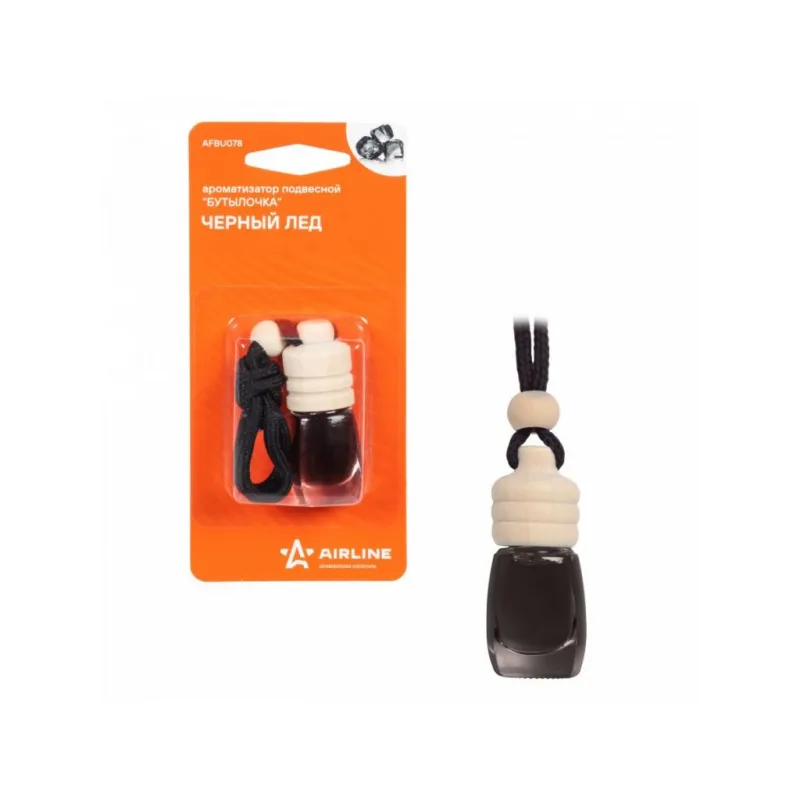 Ароматизатор подвесной "Бутылочка" Черный лед Описание: Ароматизатор для автомобиля - подвесной Бутылочка "Черный лед" от AFBU078 - универсальный ароматизатор для дома и авто, который можно расположить в любом удобном месте. Ароматизатор "Бутылочка" - абсолютный ХИТ продаж. Лаконичный дизайн: стеклянный флакон и деревянная крышечка. Интенсивность аромата регулируется самостоятельно. Аромат до 45 дней! Строгий, мужской, свежий аромат с нотами дорогого парфюма. Устраняет неприятные запахи, заряжает энергией, впечатляет. Знакомый и ненавязчивый аромат для создания приятной атмосферы и подавления неприятных запахов. Особенности: - Варианты крепления: подвесной, на зеркало, в бардачок, на солнцезащитный козырек, под сиденье, в гардеробе, в шкаф, для дома; - Состав - парфюмированная жидкость, стекло, дерево; - Универсальный - подходит для мужчин и женщин; - Не содержит спирт; Товар официального производителя AIRLINE. Духи в машину - это мини диффузор с автопарфюмом, который подарит свежесть и приятный аромат салону вашего автомобиля. Ароматизатор для машины в салон или для дома станет отличным подарком автомобилисту, мужчине и женщине, автолюбителю, папе, отцу, мужу, парню и другу на день рождения, 23 февраля, Новый год или любой другой праздник. Характеристики: Артикул: AFBU078 Аромат: Черный лед Объем, мл: 5 Комплектация: Ароматизатор в блистерной упаковке - 1 шт Гарантия: от 1 года.