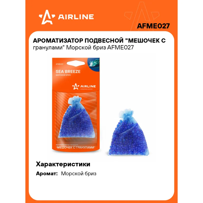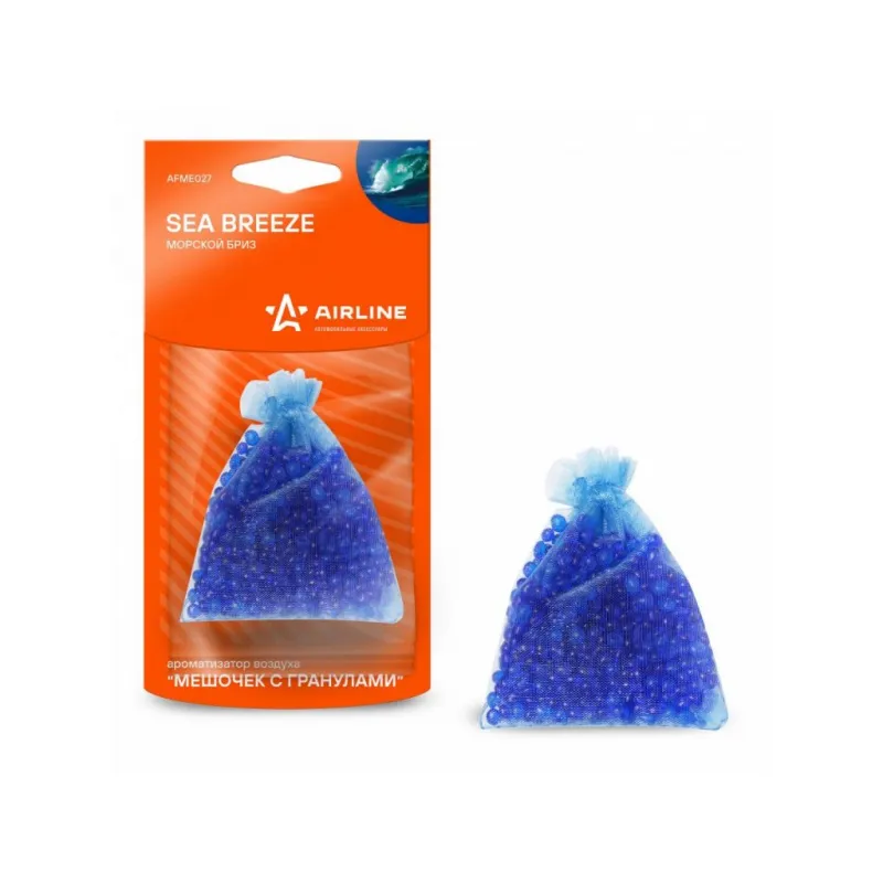 Ароматизатор подвесной "Мешочек с гранулами" Морской бриз Описание: Ароматизатор для автомобиля - Подвесной "Мешочек с гранулами "Морской бриз" от AFME027 - универсальный ароматизатор для дома и авто, который можно расположить в любом удобном месте. Аромат легкого морского бриза дарит ощущение свежести, чистоты и спокойствия. Знакомый и ненавязчивый аромат для создания приятной атмосферы и подавления неприятных запахов. Особенности: - Полностью российское производство; - Современный дизайн упаковки; - Высококачественные отдушки, над которыми работает настоящий профессиональный парфюмер; - Все ароматизаторы выполнены из полимера, в состав которого введена отдушка (отдушка вводится в жидкий полимер, что является самой правильной технологией и позволяет добиться максимально долгого аромата); - Варианты крепления: в дефлектор, в гардеробе, в шкаф, для дома; - Состав - полимер, парфюмерная отдушка; - Не содержит спирт; Товар официального производителя AIRLINE. Духи в машину - это мини диффузор с автопарфюмом, который подарит свежесть и приятный аромат салону вашего автомобиля. Ароматизатор для машины в салон или для дома станет отличным подарком автомобилисту, мужчине и женщине, автолюбителю, папе, отцу, мужу, парню и другу на день рождения, 23 февраля, Новый год или любой другой праздник. Характеристики: Артикул: AFME027 Аромат: Морской бриз Вес, г: 20 Комплектация: Ароматизатор в ПЭ пакете с картонным навершием - 1 шт Гарантия: от 1 года.