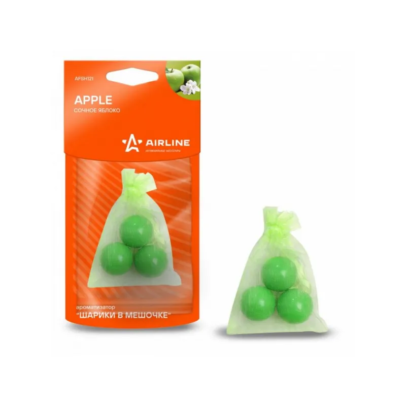 Ароматизатор "Шарики в мешочке" Сочное яблоко Описание: Ароматизатор для автомобиля - Подвесной "Шарики в мешочке" "Сочное яблоко" от AFSH121 - универсальный ароматизатор для дома и авто, который можно расположить в любом удобном месте. Аромат сочного зеленого яблока – свежий, легкий, прохладный. Он бодрит, тонизирует и поднимает настроение. Знакомый и ненавязчивый аромат для создания приятной атмосферы и подавления неприятных запахов. Особенности: - Полностью российское производство; - Современный дизайн упаковки; - Высококачественные отдушки, над которыми работает настоящий профессиональный парфюмер; - Все ароматизаторы выполнены из полимера, в состав которого введена отдушка (отдушка вводится в жидкий полимер, что является самой правильной технологией и позволяет добиться максимально долгого аромата); - Варианты крепления: в дефлектор, в гардеробе, в шкаф, для дома; - Состав - полимер, парфюмерная отдушка; - Не содержит спирт; Товар официального производителя AIRLINE. Духи в машину - это мини диффузор с автопарфюмом, который подарит свежесть и приятный аромат салону вашего автомобиля. Ароматизатор для машины в салон или для дома станет отличным подарком автомобилисту, мужчине и женщине, автолюбителю, папе, отцу, мужу, парню и другу на день рождения, 23 февраля, Новый год или любой другой праздник. Характеристики: Артикул: AFSH121 Аромат: Сочное яблоко Комплектация: Ароматизатор в ПЭ пакете с картонным навершием - 1 шт Гарантия: от 1 года.