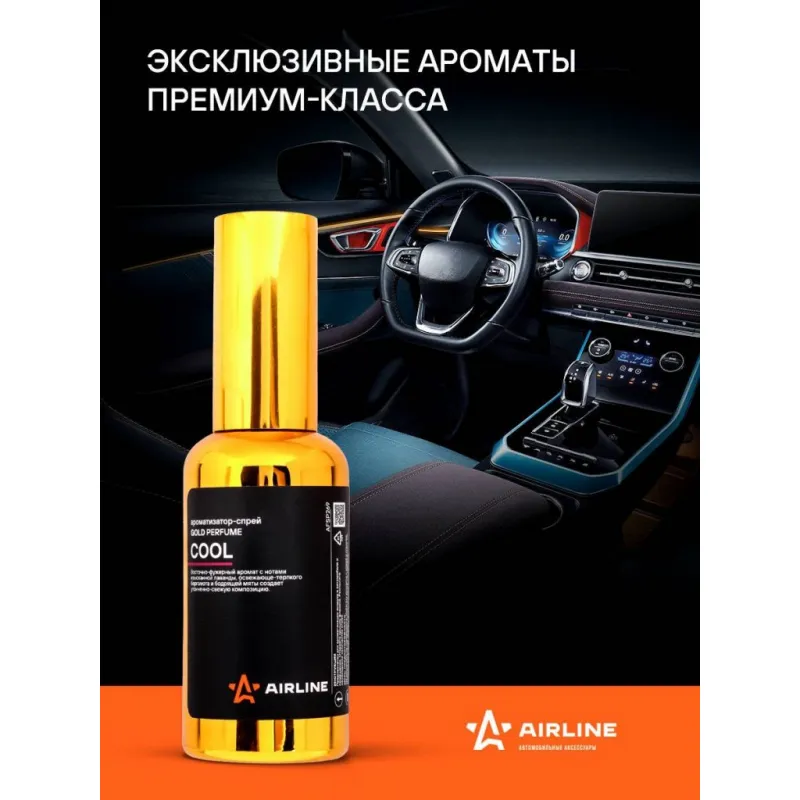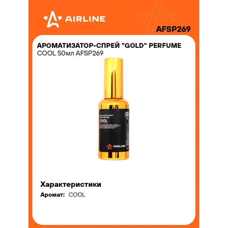 Ароматизатор-спрей "GOLD" Perfume COOL 50мл Описание: Ароматизатор для автомобиля - спрей "GOLD" Perfume "COOL" от AFSP269 - универсальный ароматизатор для дома и авто, который можно расположить в любом удобном месте. Ароматизатор представляет собой флакон с парфюмом. Восточно-фужерный аромат с нотами изысканной лаванды, освежающе-терпкого бергамота и бодрящей мяты создает утонченно-свежую композицию. Ноты корицы, тмина и флердоранжа создают атмосферу умиротворения и гармонии своими теплыми и нежными оттенками. Завершает ароматное представление сочетание ванили и бобов тонка, сандала и кедра, оставляя яркие и незабываемые впечатления. По мотивам Jean Paul Gaultier Le Male. Знакомый и ненавязчивый аромат для создания приятной атмосферы и подавления неприятных запахов. Особенности: - Варианты крепления: подвесной, на зеркало, в бардачок, на солнцезащитный козырек, под сиденье, в гардеробе, в шкаф, для дома; - Состав - вода, отдушка, эмульгатор, АИПС, консервант; - Универсальный - подходит для мужчин и женщин; - Не содержит спирт; Товар официального производителя AIRLINE. Духи в машину - это мини диффузор с автопарфюмом, который подарит свежесть и приятный аромат салону вашего автомобиля. Ароматизатор для машины в салон или для дома станет отличным подарком автомобилисту, мужчине и женщине, автолюбителю, папе, отцу, мужу, парню и другу на день рождения, 23 февраля, Новый год или любой другой праздник. Характеристики: Артикул: AFSP269 Аромат: COOL Объем, мл: 50 Комплектация: Ароматизатор в стеклянном флаконе - 1 шт Гарантия: от 1 года.