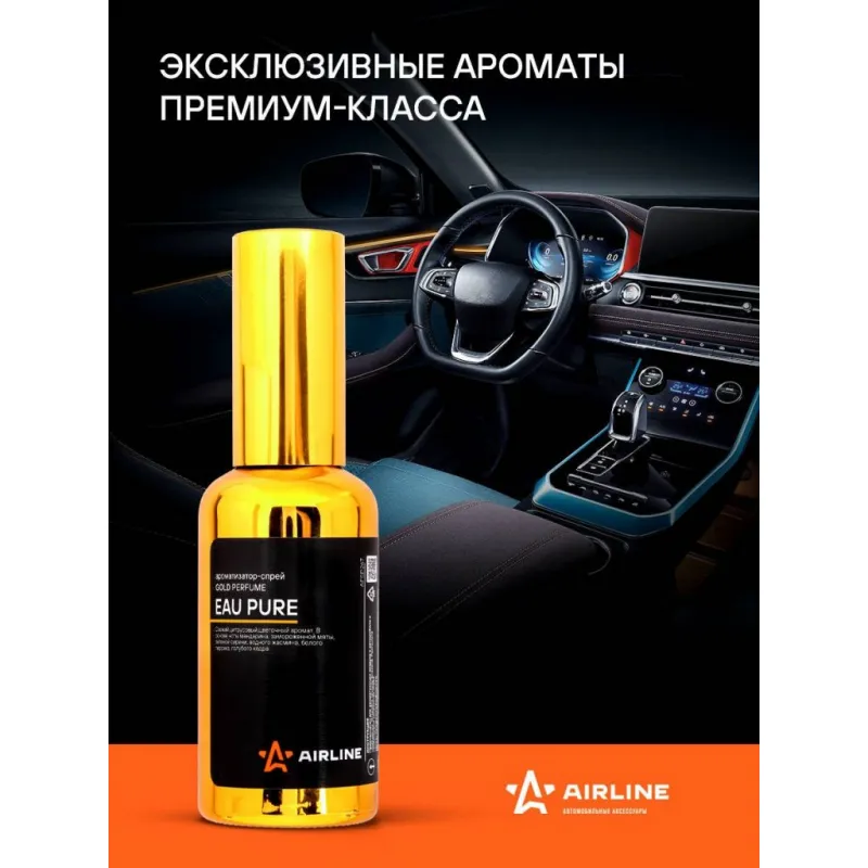 Ароматизатор-спрей "GOLD" Perfume EAU PURE 50мл Описание: Ароматизатор для автомобиля - спрей "GOLD" Perfume "EAU PURE" от AFSP267 - универсальный ароматизатор для дома и авто, который можно расположить в любом удобном месте. Ароматизатор представляет собой флакон с парфюмом. Свежий, цитрусовый, цветочный аромат по мотивам L`eau par Kenzo pour femme. Основные ноты: мандарин, замороженная мята, зеленая сирень, водный жасмин, амариллис, водяная лилия, белый персик, голубой кедр, настойка стручков ванили. Знакомый и ненавязчивый аромат для создания приятной атмосферы и подавления неприятных запахов. Особенности: - Варианты крепления: подвесной, на зеркало, в бардачок, на солнцезащитный козырек, под сиденье, в гардеробе, в шкаф, для дома; - Состав - вода, отдушка, эмульгатор, АИПС, консервант; - Универсальный - подходит для мужчин и женщин; - Не содержит спирт; Товар официального производителя AIRLINE. Духи в машину - это мини диффузор с автопарфюмом, который подарит свежесть и приятный аромат салону вашего автомобиля. Ароматизатор для машины в салон или для дома станет отличным подарком автомобилисту, мужчине и женщине, автолюбителю, папе, отцу, мужу, парню и другу на день рождения, 23 февраля, Новый год или любой другой праздник. Характеристики: Артикул: AFSP267 Аромат: EAU PURE Объем, мл: 50 Комплектация: Ароматизатор в стеклянном флаконе - 1 шт Гарантия: от 1 года.