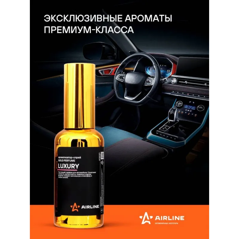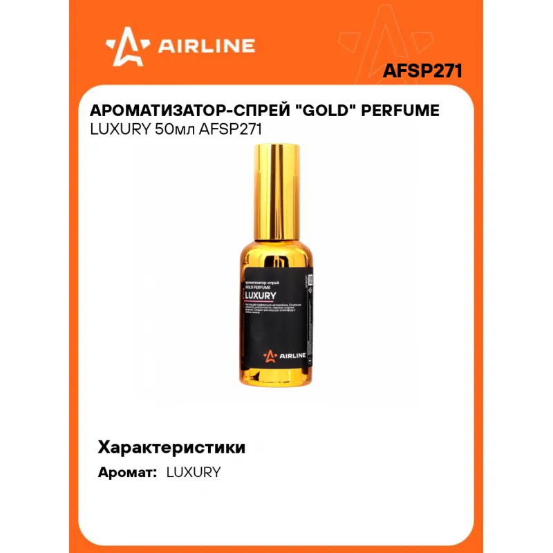 Ароматизатор-спрей "GOLD" Perfume LUXURY 50мл Описание: Ароматизатор для автомобиля - спрей "GOLD" Perfume "LUXURY" от AFSP271 - универсальный ароматизатор для дома и авто, который можно расположить в любом удобном месте. Ароматизатор представляет собой флакон с парфюмом. Настоящий парфюм для автомобиля! Сочетание свежести, элегантности, новизны в одном флаконе. Создаст роскошную атмосферу в любом салоне. Знакомый и ненавязчивый аромат для создания приятной атмосферы и подавления неприятных запахов. Особенности: - Варианты крепления: подвесной, на зеркало, в бардачок, на солнцезащитный козырек, под сиденье, в гардеробе, в шкаф, для дома; - Состав - вода, отдушка, эмульгатор, АИПС, консервант; - Универсальный - подходит для мужчин и женщин; - Не содержит спирт; Товар официального производителя AIRLINE. Духи в машину - это мини диффузор с автопарфюмом, который подарит свежесть и приятный аромат салону вашего автомобиля. Ароматизатор для машины в салон или для дома станет отличным подарком автомобилисту, мужчине и женщине, автолюбителю, папе, отцу, мужу, парню и другу на день рождения, 23 февраля, Новый год или любой другой праздник. Характеристики: Артикул: AFSP271 Аромат: LUXURY Объем, мл: 50 Комплектация: Ароматизатор в стеклянном флаконе - 1 шт Гарантия: от 1 года.