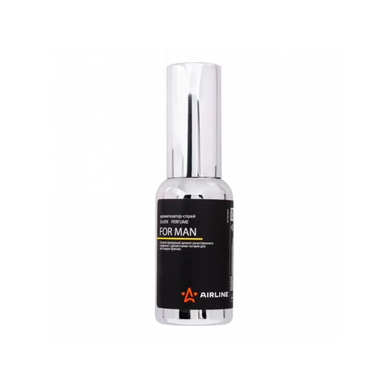 Ароматизатор-спрей "SILVER" Perfume FOR MAN 30мл Описание: Ароматизатор для автомобиля - спрей "SILVER" Perfume "FOR MAN" от AFSP262 - универсальный ароматизатор для дома и авто, который можно расположить в любом удобном месте. Ароматизатор представляет собой флакон с парфюмом. Свежий фужерный аромат качественного парфюма с древесными нотами для настоящих мужчин. Знакомый и ненавязчивый аромат для создания приятной атмосферы и подавления неприятных запахов. Особенности: - Варианты крепления: подвесной, на зеркало, в бардачок, на солнцезащитный козырек, под сиденье, в гардеробе, в шкаф, для дома; - Состав - вода, отдушка, эмульгатор, АИПС, консервант; - Универсальный - подходит для мужчин и женщин; - Не содержит спирт; Товар официального производителя AIRLINE. Духи в машину - это мини диффузор с автопарфюмом, который подарит свежесть и приятный аромат салону вашего автомобиля. Ароматизатор для машины в салон или для дома станет отличным подарком автомобилисту, мужчине и женщине, автолюбителю, папе, отцу, мужу, парню и другу на день рождения, 23 февраля, Новый год или любой другой праздник. Характеристики: Артикул: AFSP262 Аромат: FOR MAN Объем, мл: 30 Комплектация: Ароматизатор в стеклянном флаконе - 1 шт Гарантия: от 1 года.