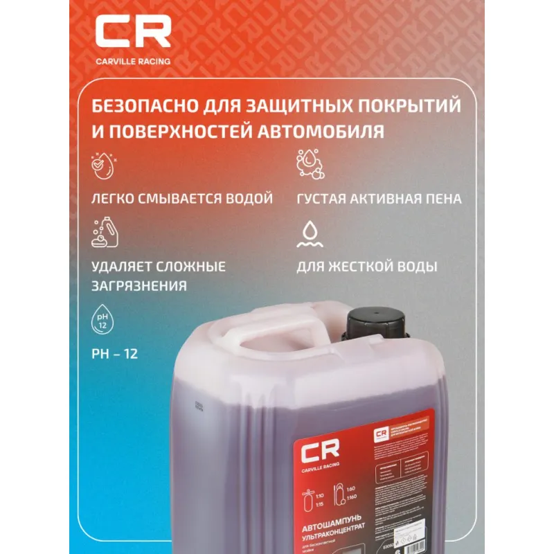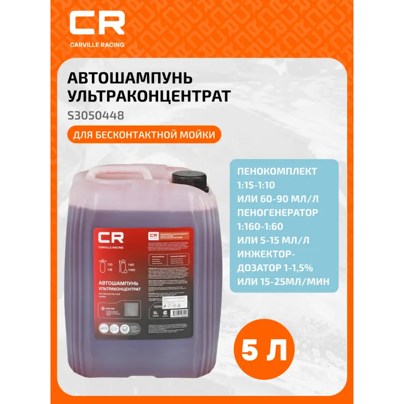 Автошампунь-ультраконцентрат для бесконтактной мойки, 5л Описание: Высококонцентрированное средство с усиленной моющей способностью для бесконтактной мойки легковых и грузовых автомобилей. Эффективно растворяет стойкие загрязнения – следы от насекомых, птичий помет, дорожную грязь, масло, пыль. Хорошо пенится, легко смывается. Подходит для регулярного применения в воде повышенной жесткости. Сохраняет эффективность в воде из скважины и во время таяния снега. Характеристики: Артикул: S3050448 Состав: вода >30%, фосфонаты 15 - 30%, анионные ПАВ 5 -15%, неионогенные ПАВ