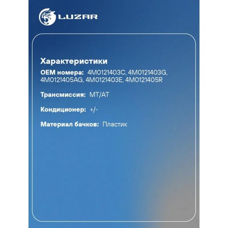 | Сопутствующий товар: Крышки (пробки) расширительного бачка | LL 1807; LL 1810 |