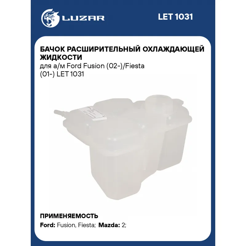 Бачок расширительный охлаждающей жидкости для а/м Ford Fusion (02-)/Fiesta (01-) Характеристики: Артикул: LET 1031 OEM номера: 1221362, 1146360, 1141512, 1141514, 1142509, 2S6H8K218AC, 2S6H8K218AD, 2S6H8K218AE, 2S6H8K218AF, 2S6H8K218BC Трансмиссия: MT/AT Кондиционер: +/- Габариты изделия, мм: 241,9*195*143,1 Сопутствующий товар: Радиаторы охлаждения: LRc 1014; LRc 1031 Количество на автомобиль: 1 Материал бачков: пластик Подходит для авто: Ford Fusion (02-), Fiesta (01-), Fiesta (01-) Mazda 2 (03-), 2 (03-) Для проверки применяемости отправьте VIN автомобиля через вкладку "Есть вопросы о товаре?" Комплектация: Бачок расширительный - 1 шт Паспорт изделия - 1 шт Гарантия: от 1 года.