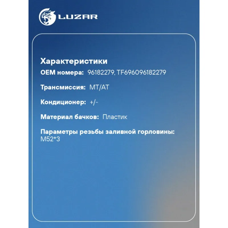 | Сопутствующий товар: Крышки (пробки) расширительного бачка | LL 0563 |
