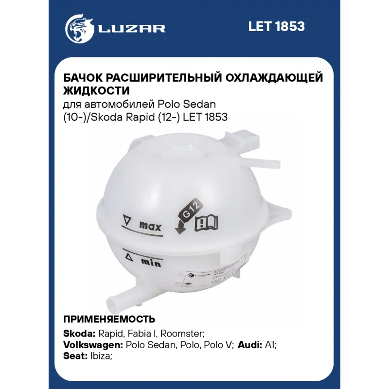 Бачок расширительный охлаждающей жидкости для автомобилей Polo Sedan (10-)/Skoda Rapid (12-) Характеристики: Артикул: LET 1853 OEM номера: 6Q0121407B, 6Q0121407 Трансмиссия: MT/AT Кондиционер: +/- Материал бачков: пластик Сопутствующий товар: Крышки (пробки) расширительного бачка: LL 1835 Количество на автомобиль: 1 Параметры резьбы заливной горловины: M62*3 Подходит для авто: Skoda Rapid (20-), Fabia I (99-), Rapid (12-), Roomster (06-), Fabia II (07-), Fabia I (99-) Volkswagen Polo Sedan (RUS) (10-), Polo (RUS) (20-), Polo V (09-) Audi A1 (10-), A1 (10-) Seat Ibiza (08-), Ibiza (00-), Ibiza (00-) Для проверки применяемости отправьте VIN автомобиля через вкладку "Есть вопросы о товаре?" Комплектация: Бачок расширительный Паспорт изделия Гарантия: от 1 года.