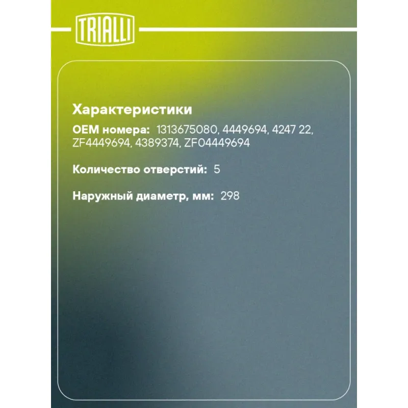 | TRIALLI TF160031 4 шт. | 1 день | 201.10 р. | |