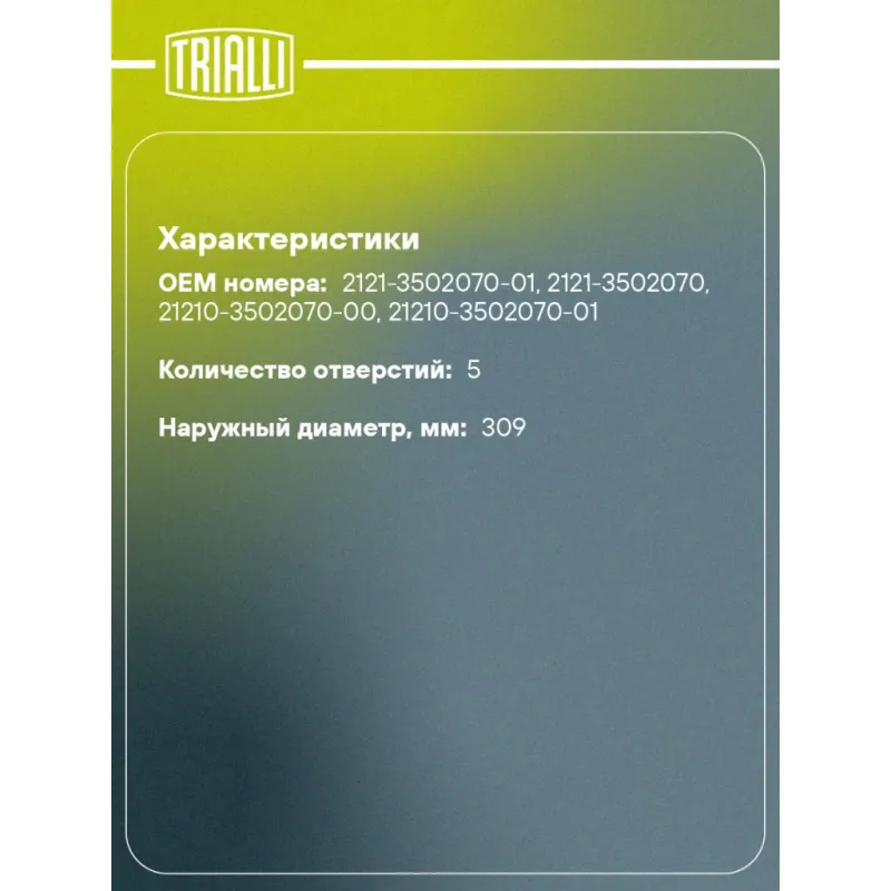 | Наружный диаметр, мм | 309 |