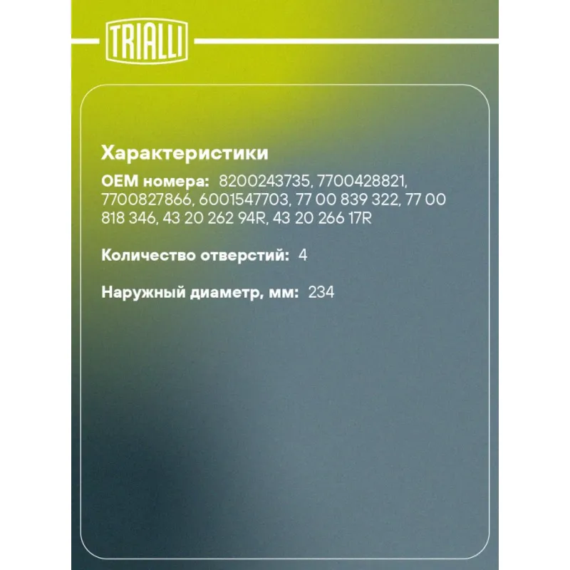 | TRIALLI TF015132 4 шт. | 2 дня | 128.50 р. | |
