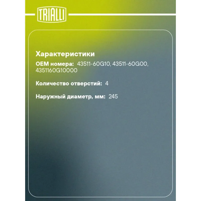 | Наружный диаметр, мм | 245 |