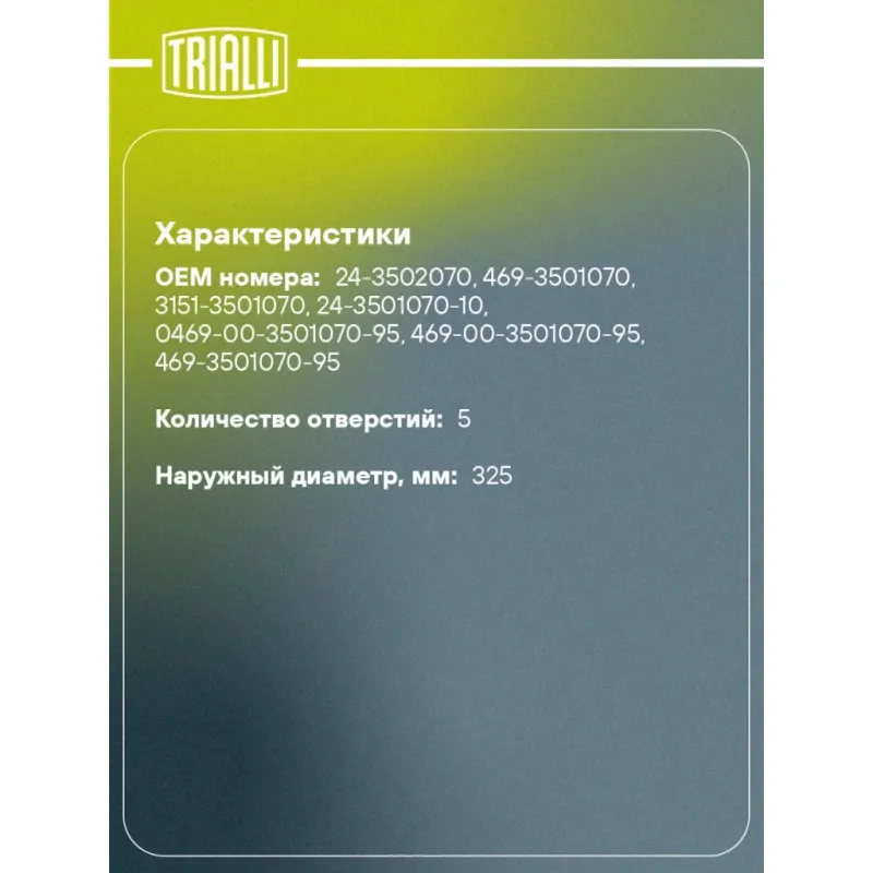 | Наружный диаметр, мм | 325 |