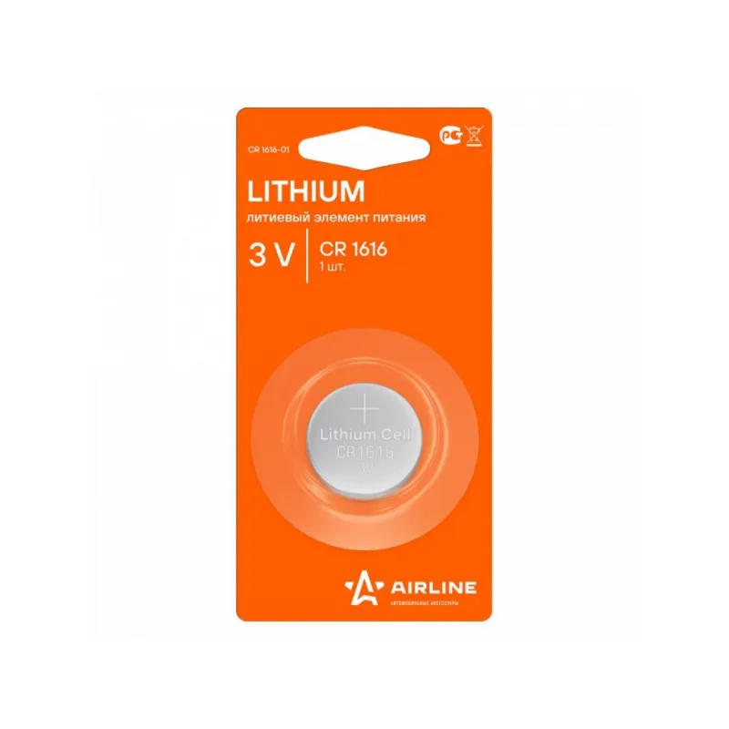 Батарейка CR1616 3V для брелоков сигнализаций литиевая 1 шт. Описание: Батарейки CR1616 / 3V литиевые 1 шт 3 В для брелоков сигнализаций AIRLINE CR1616-01 - Lithium, литиевый элемент питания. Долговечные батарейки – идеальный источник питания для часто используемых устройств. Эти надежные батарейки гарантируют, что ваши гаджеты будут работать дольше, обеспечивая стабильную и продолжительную работу. Оптимальное решение для тех, кто ценит качество и долговечность. Особенности и преимущества: *Удобная и экономичная упаковка - оптимальное количество для подзарядки устройств. *Высокая емкость батареек, продолжительный срок службы, низкий уровень саморазряда. *Электрическая емкость выше, чем у алкалиновых бата. *Абсолютная герметичность. *Увеличенный срок службы. При установке соблюдать полярность (+/-). Не устанавливать одновременно заряженные и разряженные элементы, а также элементы различных марок, систем и типов. Батарейки подойдут на устройства: телевизионные пульты, ручные фонарики, манометры, игрушки, часы, детские игрушки, джойстики, компьютерные мышки, фотоаппараты, плееры. Товар официального производителя AIRLINE. Батарейки это нужная вещь в хозяйстве, всегда пригодится. Характеристики: Артикул: CR1616-01 OEM номера: 72148-S0A-000, MCR1616 Номинальное напряжение, В: 3 Типоразмер: CR1616 Комплектация: Батарейка в блистере - 1 шт Гарантия: от 1 года.