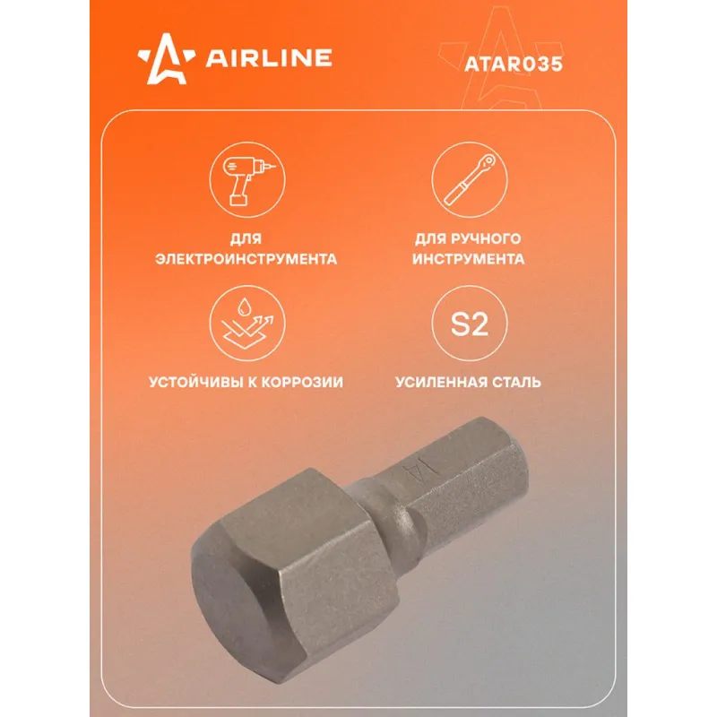 Бита вставка 5/16" HEX 14мм, 30мм Описание: Набор бит вставок для шуруповерта от бренда AIRLINE ATAR035 - универсальный набор инструментов для работы с резьбовыми соединениями с различным шлицем. Биты вставки изготовлена из специальной стали CR-V, что придаёт им высокую прочность и долговечность. Размер H14; Подходит для работы с шуруповертом, дрелью; Для монтажа, Для сборки, Универсальный; Высокая эффективность при завинчивании или отвинчивании; Разнообразие бит позволит выполнить множество работ в специализированных механических и автосервисах. Набор бит это идеальное дополнение в набор инструментов и подойдет для подарка мужу, дедушке, мужчине, автомобилисту, на день рождения, новый год, 23 февраля и без повода. Характеристики: Артикул: ATAR035 Размер: H14 Длина, мм: 30 Размер, мм: 14 Твердость: 58-62HRC Покрытие: Хромирование Комплектация: Бита - 1 шт Гарантия: от 1 года.