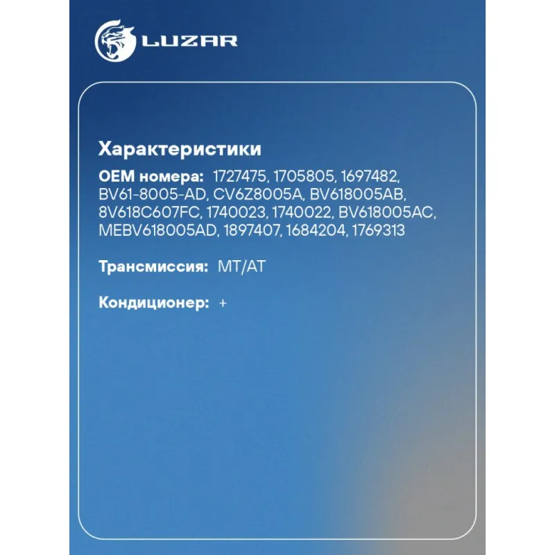 | Сопутствующий товар: Радиаторы кондиционера (конденсеры) | LRAC 1013; LRAC 1075 |
