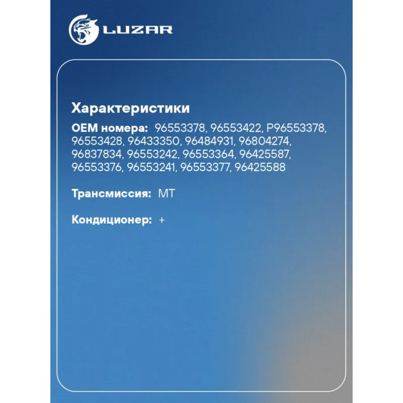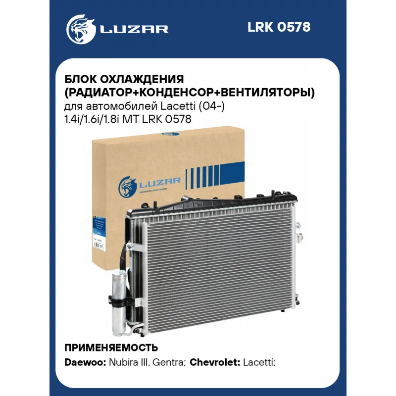 Блок охлаждения (радиатор+конденсор+вентиляторы) для автомобилей Lacetti (04-) 1.4i/1.6i/1.8i MT Характеристики: Артикул: LRK 0578 OEM номера: 96553378, 96553422, P96553378, 96553428, 96433350, 96484931, 96804274, 96837834, 96553242, 96553364, 96425587, 96553376, 96553241, 96553377, 96425588 Сопутствующий товар: Радиаторы охлаждения: LRc CHLt04178 Сопутствующий товар: Радиаторы кондиционера (конденсеры): LRAC 0578 Сопутствующий товар: Электровентиляторы охлаждения: LFc 0564 Сопутствующий товар: Электровентиляторы кондиционера: LFAC 0541 Количество на автомобиль: 1 Трансмиссия: MT Кондиционер: + Состав:: LRc CHLt04178+LRAC 0578+LFc 0564+LFAC 0541 Подходит для авто: Daewoo Nubira III (03-), Gentra (13-) Chevrolet Lacetti (02-) Для проверки применяемости отправьте VIN автомобиля через вкладку "Есть вопросы о товаре?" Комплектация: Блок охлаждения в сборе Паспорт изделия Гарантия: от 1 года.