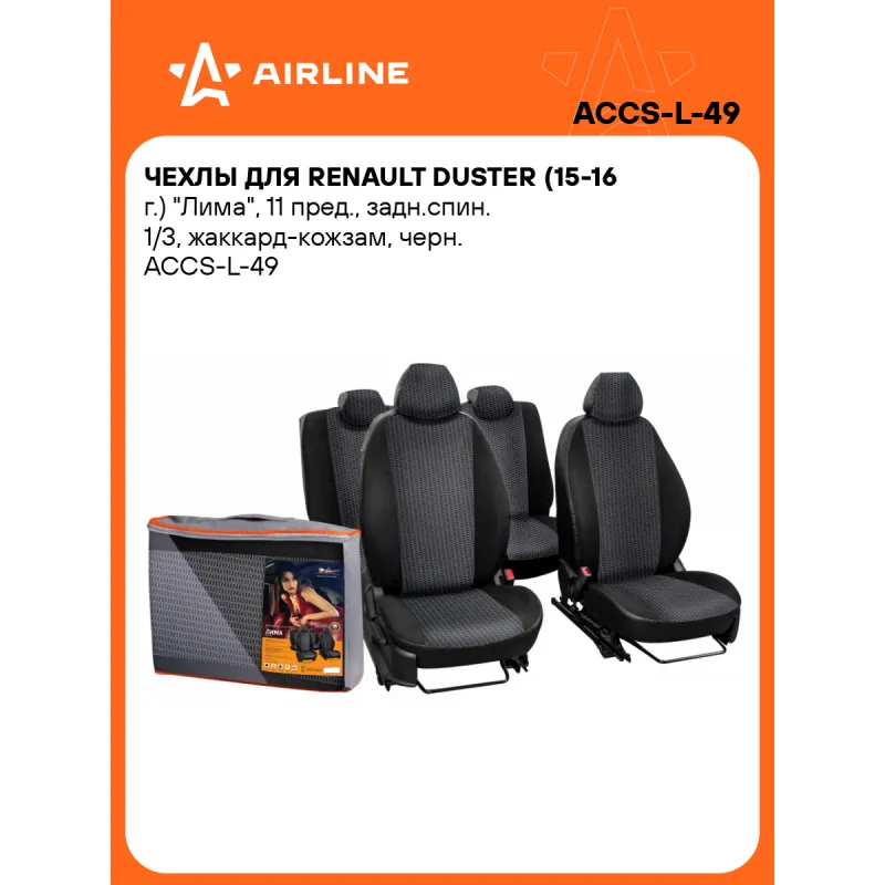 Чехлы для Renault Duster (15-16 г.) "Лима", 11 пред., задн.спин. 1/3, жаккард-кожзам, черн. Описание: Чехлы изготовлены по бокам и сзади из искусственной кожи высокого качества черного цвета, в центральной части из автомобильного жаккарда триплированного поролоном, который по своим свойствам идентичен штатному. Жаккардовая вставка имеет рисунок «Штрих» черного цвета с серыми вкраплениями. В местах боковой поддержки применяется специализированная ткань-компаньон. На спинках передних сидений расположены вместительные карманы на молнии. Передние чехлы имеют специальный крой не мешающий открытию подушек безопасности. Характеристики: Артикул: ACCS-L-49 Размер: индивидуальный по марке авто Вид крепления: резинки, крючки, шнуры, липучки Морозостойкость, С: -40 Защита: от механических повреждений, УФ лучей Подходит для авто: Renault Duster (10-), Duster (10-) Для проверки применяемости отправьте VIN автомобиля через вкладку "Есть вопросы о товаре?" Комплектация: Передние спинки - 2 шт Передние сиденья - 2 шт Заднее сиденье - 1 шт Задняя спинка (на молнии) - 1 шт Подголовник - 5 шт Крючки для крепления - 25 шт Гарантия: от 1 года.