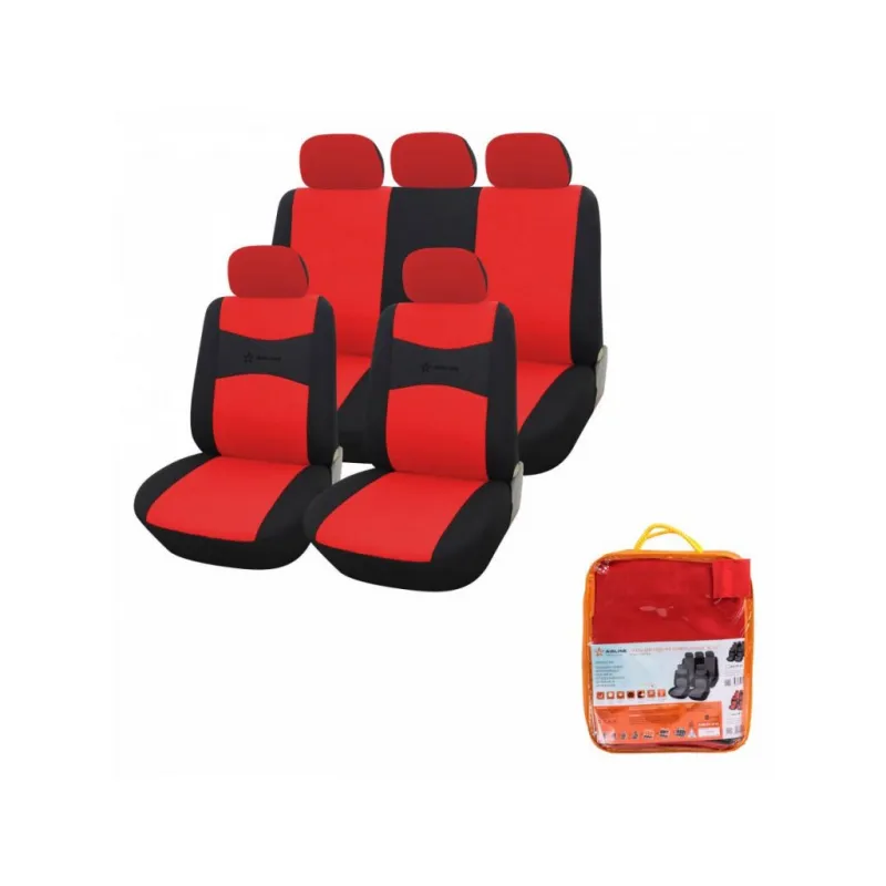 Чехлы для сидений универсал. "RS-2k", передн./задн.(9 предм.), полиэстер, черн./красн. Описание: Предназначены для защиты штатной обивки сидений от механических повреждений, загрязнений и выцветания. Чехлы легко устанавливаются, имеют универсальный размер и крепление, тем самым подходят для большинства легковых автомобилей. Изделия сшиты из износостойкого, высококачественного приятного на ощупь материала - гладкого полиэстера, покрывающего всю площадь штатной обивки сидений. Чехлы исполнены в различных комбинациях выкройки, цветов и комплектаций. Имеют специальный ослабленный шов в месте расположения подушки безопасности для ее беспрепятственного открытия. Для облегчения монтажа подголовников в местах их крепления предусмотрены открывающиеся липучки. Характеристики: Артикул: ACS-PP-09 Спинка заднего сиденья, %: 100 Количество молний на спинке заднего чехла, шт: 0 Тип ткани: гладкий полиэстер Количество предметов, шт: 9 Цвет: черный/красный Размер: универсальный Вид крепления: резинки+крючки Карманы на спинках перед. сидений: нет Тип крепления: резинки+крючки Комплектация: Чехол на переднее сиденье - 2 шт Стартер - 1 шт Сиденье заднее - 1 шт Паспорт изделия/гарантийный талон Крючки - 20 шт Сумка ПВХ - 1 шт Гарантия: от 1 года.