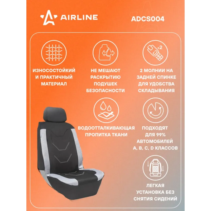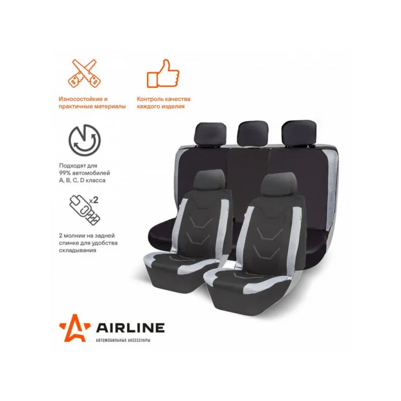 Чехлы для сидений универсал. "RS-8k+", передн./задн.(8 предм.), влагозащит. полиэстер, черн./сер. Описание: Предназначены для защиты штатной обивки сидений от механических повреждений, загрязнений и выцветания. Чехлы легко устанавливаются, имеют универсальный размер и крепление, тем самым подходят для большинства легковых автомобилей. Изделия сшиты из износостойких, высококачественных приятных на ощупь материалов - гладкого полиэстера, покрывающих всю площадь штатной обивки сидений. Ткань чехлов пропитана влагооталкивающей пропиткой, что спасает сиденья от пролитых на них жидкостей. Чехлы исполнены в различных комбинациях выкройки, цветов и комплектаций. Имеют специальный ослабленный шов в месте расположения подушки безопасности для ее беспрепятственного открытия. Для облегчения монтажа подголовников в местах их крепления предусмотрены отверстия. Характеристики: Артикул: ADCS004 Количество молний на спинке заднего чехла, шт: 2 Тип ткани: гладкий полиэстер Количество предметов, шт: 8 Цвет: черный/серый Размер: универсальный Вид крепления: резинки+крючки Карманы на спинках перед. сидений: нет Спинка заднего сиденья, %: 40/60 Тип крепления: резинки+крючки Комплектация: Крепление - 1 компл Подголовники - 5 шт Сумка ПВХ - 1 шт Чехол на переднее сиденье - 2 шт Инструкция - 1 шт Сиденье заднее со спинкой - 1 шт Гарантия: от 1 года.