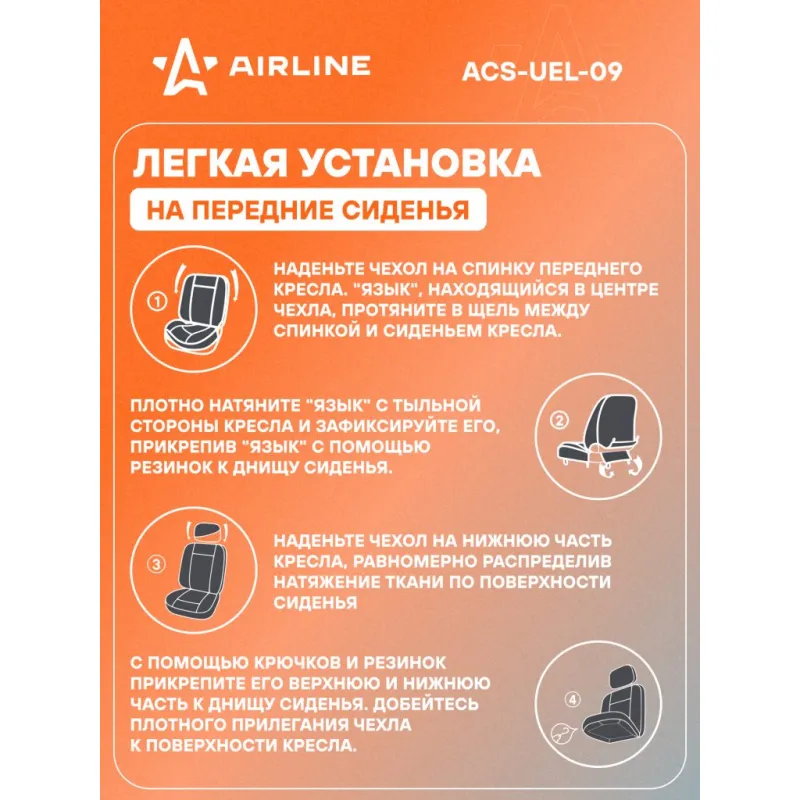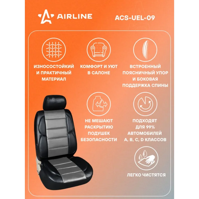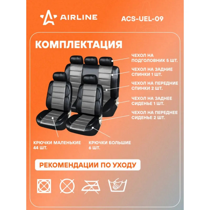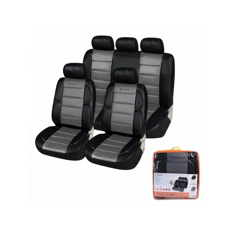 Чехлы для сидений универсальные "PREMIER", 11 пред., повыш. комфорт, иск.кожа, черн./сер. Описание: Предназначены для защиты штатной обивки сидений от механических повреждений, загрязнения и выцветания, а так же преображают внешний вид салона. Чехлы имеют универсальный размер и подходят на сиденья большинства легковых автомобилей. Модель сшита из износостойкой, высококачественной искусственной ПВХ кожи в сочетании с тянущимся гладким полиэстером, который обеспечивает хорошее прилегание к сиденьям. Чехлы имеют специальный ослабленный шов в месте расположения подушки безопасности для ее беспрепятственного открытия. Для облегчения монтажа подголовников в местах их крепления предусмотрены открывающиеся липучки. Передние чехлы для удобства дополнительно оснащены боковой поддержкой спины. Характеристики: Артикул: ACS-UEL-09 Количество молний на спинке заднего чехла, шт: 2 Тип ткани: искусств. кожа Количество предметов, шт: 11 Цвет: черный/серый Размер: универсальный Вид крепления: резинки+крючки Карманы на спинках перед. сидений: нет Спинка заднего сиденья, %: 40/60 Тип крепления: резинки+крючки Комплектация: Переднее сиденье - 2 шт Спинка переденго сиденья - 2 шт Спинка заднего сиденья - 1 шт Сиденье заднее - 1 шт Подголовники - 5 шт Крючки - 20 шт Сумка ПВХ - 1 шт Гарантия: от 1 года.