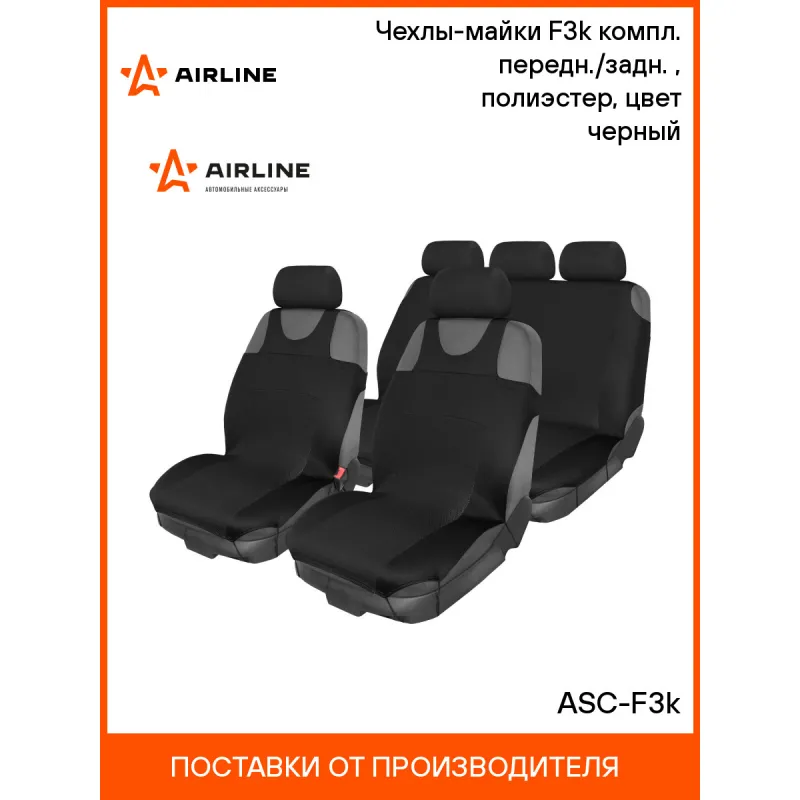 Чехлы-майки F3k компл. передн./задн.(9 предм.), полиэстер, цвет черный Описание: Чехлы-майки комплекта F-3К – это полный комплект чехлов, предназначенный для переднего и заднего ряда автомобильных сидений. Изделия изготовлены в универсальном черном цвете и имеют доступную систему крепления, которая позволит установить чехлы в машину за несколько минут. Чехлы защитят обшивку сидений и помогут надолго сохранить первоначальный вид автомобильного салона. Характеристики: Артикул: ASC-F3k Вид крепления: Резинки, крючки Толщина поролона: 2 мм Спинка заднего сиденья, %: 40/60 Количество молний на спинке заднего чехла, шт: 2 Тип ткани: гладкий полиэстер Количество предметов, шт: 9 Цвет: черный Размер: универсальный Карманы на спинках перед. сидений: нет Тип крепления: резинки+крючки Комплектация: Чехлы-майки на передние сиденье - 2 шт Чехол на заднее сиденье - 2 шт Крючки для крепления - 24 шт Чехлы на подголовник - 5 шт Сумка ПВХ с вкладышем - 1 шт Гарантия: от 1 года.