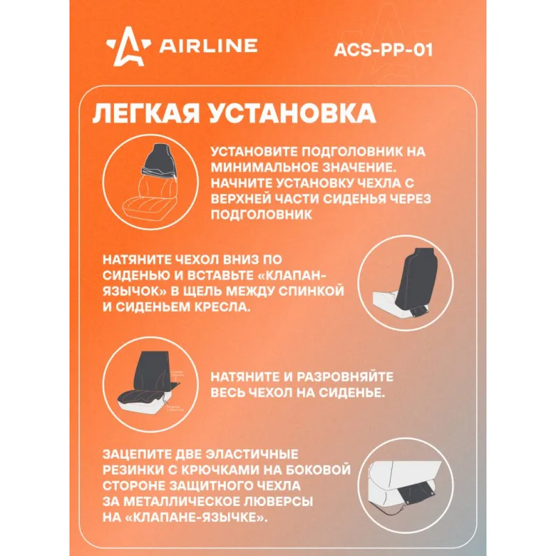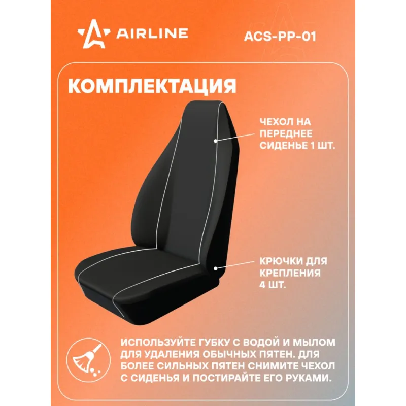 Чехол для переднего сиденья с подгол., универсальный, 1 шт., полиэстер, черн. Описание: Предназначен для передних сидений автомобиля. Поможет защитить обшивку сидений от механических повреждений и выцветания. Подходит для сидений со встроенными или регулируемыми подголовниками.Чехол имеет универсальный размер и подходит для большинства легковых автомобилей. Изготовлен из износоустойчивого гладкого полиэстера. Характеристики: Артикул: ACS-PP-01 Спинка заднего сиденья, %: - Тип ткани: гладкий полиэстер Количество предметов, шт: 1 Цвет: черный Размер: универсальный Вид крепления: резинки+крючки Карманы на спинках перед. сидений: нет Тип крепления: Резинки+крючки Комплектация: чехол - 1 шт Коробка - 1 шт Крючки - 4 шт Гарантия: от 1 года.