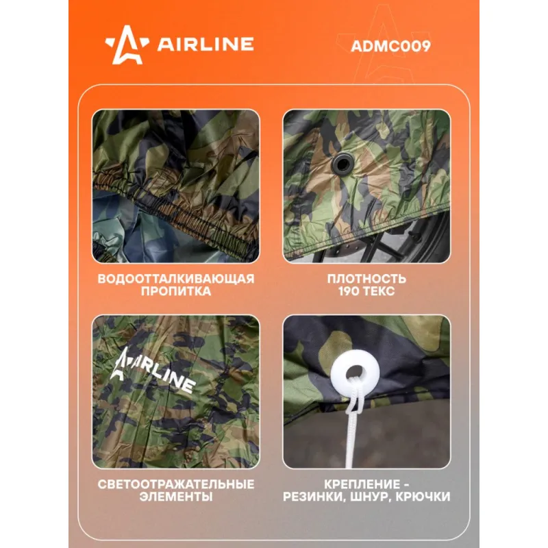Чехол-тент на мотоцикл защитный L (250х100х120см), люверс под замок, летний камуфляж Описание: Защитный чехол - тент от компании AIRLINE - универсальный автоаксессуар с покрытием специально разработанный для мотоциклов надежно защитит мотоцикл от вредного воздействия окружающей среды и защитит от коррозии и выцветания краски. Чехол - тент укрывной поможет сохранить лакокрасочное покрытие транспортного средства и его корпус от выцветания и механических повреждений. Чехол для мотоцикла универсальный чехол для мотоцикла или мопеда. Среди преимуществ чехла-тента многочисленные защитные свойства, которые помогают сохранить внешний вид транспортного средства и уберечь его от повреждений. Преимущества: -сумка-чехол для удобного хранения; -защищает от снега и наледи; -защищает лакокрасочное покрытие от пыли и грязи, тополиных почек, от дождя и града; -скрывает мотоцикл от посторонних взглядов; -в области переднего колеса сделаны специальные люверсы для крепления блокиратора-замка; -подходит для 99% больших дорожных мотоциклов и круизеров. Будет хорошим приобретением в подарок автовладельцу, мужчине, мужу, брату, парню, другу и каждому автомобилисту, это незаменимый аксессуар для владельцев мотоцикла, так как его можно использовать во время гаражного хранения, на парковке на улице у дома или на даче на стоянке. Характеристики: Артикул: ADMC009 Ширина, мм: 1000 Длина, мм: 2500 Высота, мм: 1200 Цвет: камуфляж водоотталкивающая пропитка: да Плотность материала, текс: 190 Тип крепление: резинки, шнур, крючки Светоотражательные элементы: спереди, сзади Светоотражательные элименты: да Комплектация: Чехол-тент - 1 шт Сумка ПВХ - 1 шт Гарантия: от 1 года.