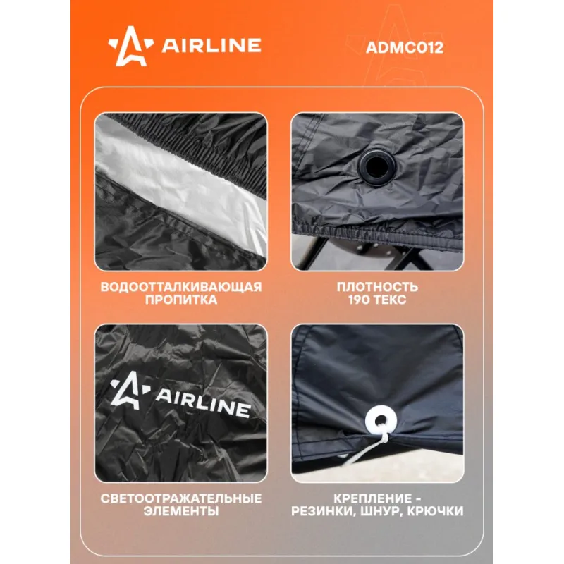 Чехол-тент на мотоцикл защитный L (250х100х120см), люверс под замок, черный Описание: Защитный чехол-тент от компании AIRLINE разработан специально для мотоциклов. Данная модель защитного чехла имеет размер L и черную расцветку. Среди преимуществ чехла-тента многочисленные защитные свойства, которые помогают сохранить внешний вид транспортного средства и уберечь его от повреждений. В области переднего колеса сделаны специальные люверсы для крепления блокиратора-замка. Характеристики: Артикул: ADMC012 Ширина, мм: 1000 Длина, мм: 2500 Высота, мм: 1200 Цвет: черный водоотталкивающая пропитка: да Плотность материала, текс: 190 Тип крепление: резинки, шнур, крючки Светоотражательные элементы: спереди, сзади Светоотражательные элименты: да Комплектация: Сумка ПВХ - 1 шт Чехол-тент - 1 шт Гарантия: от 1 года.