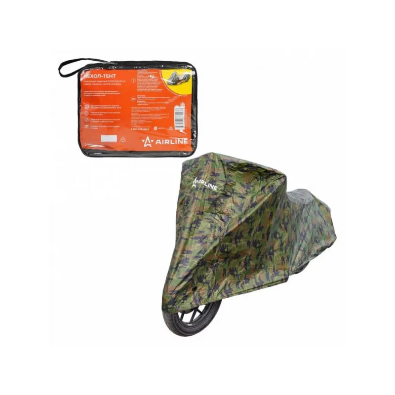 Чехол-тент на мотоцикл защитный M (225х90х110см), люверс под замок, летний камуфляж Описание: Защитный чехол - тент от компании AIRLINE - универсальный автоаксессуар с покрытием специально разработанный для мотоциклов надежно защитит мотоцикл от вредного воздействия окружающей среды и защитит от коррозии и выцветания краски. Чехол - тент укрывной поможет сохранить лакокрасочное покрытие транспортного средства и его корпус от выцветания и механических повреждений. Чехол для мотоцикла универсальный чехол для мотоцикла или мопеда. Среди преимуществ чехла-тента многочисленные защитные свойства, которые помогают сохранить внешний вид транспортного средства и уберечь его от повреждений. Преимущества: -сумка-чехол для удобного хранения; -защищает от снега и наледи; -защищает лакокрасочное покрытие от пыли и грязи, тополиных почек, от дождя и града; -скрывает мотоцикл от посторонних взглядов; -в области переднего колеса сделаны специальные люверсы для крепления блокиратора-замка; -подходит для 99% больших дорожных мотоциклов и круизеров. Будет хорошим приобретением в подарок автовладельцу, мужчине, мужу, брату, парню, другу и каждому автомобилисту, это незаменимый аксессуар для владельцев мотоцикла, так как его можно использовать во время гаражного хранения, на парковке на улице у дома или на даче на стоянке. Характеристики: Артикул: ADMC008 Ширина, мм: 900 Длина, мм: 2250 Высота, мм: 1100 Цвет: Камуфляж водоотталкивающая пропитка: да Плотность материала, текс: 190 Тип крепление: резинки, шнур, крючки Светоотражательные элементы: спереди, сзади Светоотражательные элименты: да Комплектация: Чехол-тент - 1 шт Сумка ПВХ - 1 шт Гарантия: от 1 года.