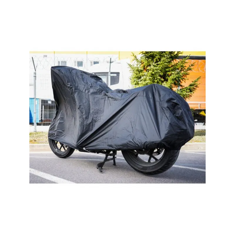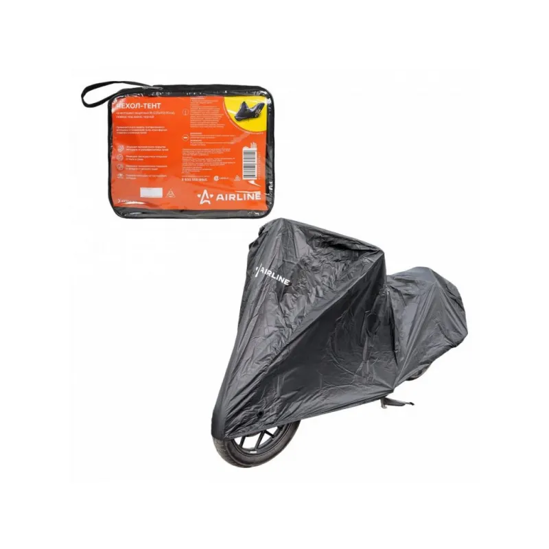 Чехол-тент на мотоцикл защитный M (225х90х110см), люверс под замок, черный Описание: Защитный чехол-тент от компании AIRLINE – это сочетание проверенного качества и доступной цены. Чехол изготовлен из высокопрочного материала полиэстера, чем и обусловлены высокие защитные свойства изделия. Данная модель изготовлена специально для мотоциклов и имеет размер М. Чехол-тент защищает мотоцикл от повреждения корпуса вследствие неблагоприятных погодных условий. В области переднего колеса сделаны специальные люверсы для крепления блокиратора-замка. Характеристики: Артикул: ADMC011 Ширина, мм: 900 Длина, мм: 2250 Высота, мм: 1100 Цвет: черный водоотталкивающая пропитка: да Плотность материала, текс: 190 Тип крепление: резинки, шнур, крючки Светоотражательные элементы: спереди, сзади Светоотражательные элименты: да Комплектация: Чехол-тент - 1 шт Сумка ПВХ - 1 шт Гарантия: от 1 года.