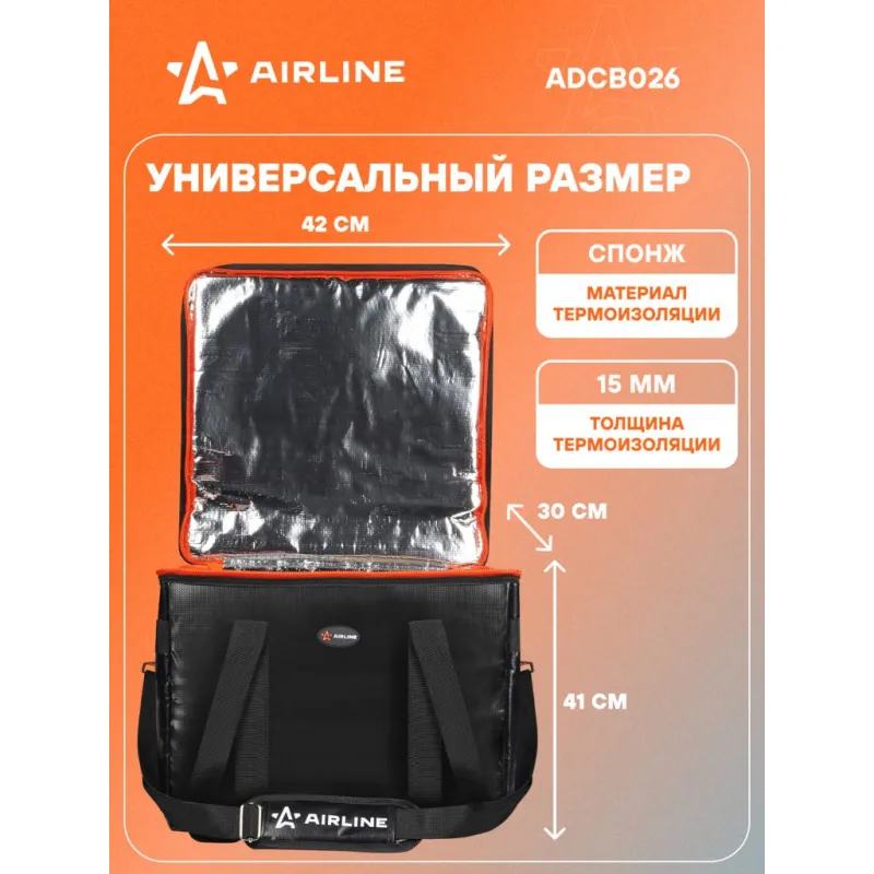 Сумка-холодильник (термосумка) "BIG SIZE", 50 л, 41*42*30 см, вертикальная, черная Описание: Сумка холодильник термосумка 50 л "BIG SIZE", 48*48*37 см AIRLINE ADCB026 - это надежное средство для обеспечения необходимой температуры и поддержания ее на протяжении длительного периода времени при транспортировки продуктов в автомобиле. Сохранение температуры происходит из-за применяемых в составе изделия теплоизолирующих материалов, в который входят брезент, вспененный полиэтилен, а также водонепроницаемая PEVA пленка. Сумка имеет кубической форму, что позволяет использовать ее не только для хранения продуктов, но и для перевозки oбъемных вещей. Полезный аксессуар, который позволит сохранить необходимую температуру (холод или тепло) в течение длительного времени - 30 ч. Особенности: *Сумка объемом 50 л; *Удобные ручки для переноски. *Полностью герметичная модель. *Материалы: Брезент, спонж 15мм, фольгированный материал, пластик; Эстетичный аксессуар - летняя сумка для перевозки продуктов питания и набора посуды для пикника. Это незаменимая вещь для отдыха на природе, дорожный органайзер, который можно наполнить продуктами и напитками для пикника на свежем воздухе, также подходит для перевозки лекарств. Термосумку холодильник можно использовать для контейнеров с горячим обедом или ужином, ланчем, продуктами, бутылочек с детским питанием. Термосумка AIRLINE - это главный аксессуар автомобильного, дачного, пляжного, туристического отдыха, для похода, для кемпинга, для дачи, в дорогу. Практичное приобретение для семей с детьми, взрослых мужчин и женщин, девушек и парней, которые любят отдых на природе. Термостойкий качественный контейнер - это отличный подарок для жены, мужа, папы, мамы, лучшего друга или подруги на день рождения, юбилей, 8 Марта и 23 Февраля, Новый год. Характеристики: Артикул: ADCB026 Объем, л: 50 Длина, мм: 420 Ширина, мм: 300 Высота, мм: 410 Толщина термоизоляции, мм: 15 Материал термоизоляции: спонж Температура использования, С: -40/+60 Водонепроницаемость: частичная Грузоподъемность, кг: 20 Время сохранения температуры, ч: 30 Комплектация: Сумка - 1 шт ПЭ пакет вкладышем - 1 шт Гарантия: от 1 года.