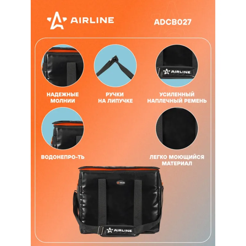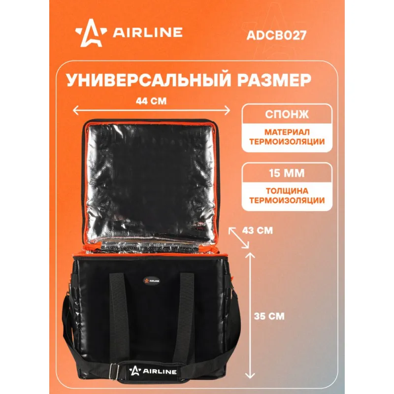 Сумка-холодильник (термосумка) "BIG SIZE", 65 л, 44*43*35см, вертикальная, черная Описание: Сумка-холодильник "BIG SIZE" ADCB027 от бренда AIRLINE из материала плотностью 600 ден (D) - полезный аксессуар, который позволит сохранить необходимую температуру (холод или тепло) в течение длительного времени - 30 ч. Особенности: *Сумка объемом 65 л; *Удобные ручки для переноски, плечевой ремень. Сумка имеет большой размер кубической формы и предназначена для хранения и перевозке в автомобиле, большого количество продуктов; *Полностью герметичная модель с несколькими отделениями и карманами. *Материалы: Брезент, спонж 15 мм, фольгированный материал, пластик; *Толщина термоизолирующей пленки - 15 мм. Эстетичный аксессуар сумка летняя для перевозки продуктов питания и набора посуды для пикника, требующих сохранения определенной температуры, незаменимая вещь для отдыха на природе, дорожный органайзер, который можно наполнить продуктами и напитками для пикника на свежем воздухе, перевозки лекарств. Термосумку холодильник можно использовать для контейнеров с горячим обедом или ужином, ланчем, для хранения пищевых продуктов, бутылочек с детским питанием, можно использовать в качестве минихолодильника, если наполнить его хладоэлементами (аккумуляторами холода). Термосумка AIRLINE - это главный аксессуар автомобильного, дачного, пляжного, туристического отдыха, для похода, для кемпинга, для дачи, в дорогу. Стильная сумочка на замке - молнии станет практичным приобретением для семей с детьми, взрослых мужчин и женщин, девушек и парней, которые любят отдых на природе. Термостойкий качественный контейнер - это отличный подарок для жены, мужа, папы, мамы, лучшего друга или подруги на день рождения, юбилей, 8 Марта и 23 Февраля, Новый год. Характеристики: Артикул: ADCB027 Объем, л: 65 Длина, мм: 440 Ширина, мм: 350 Высота, мм: 430 Толщина термоизоляции, мм: 15 Материал термоизоляции: спонж Температура использования, С: -40/+60 Водонепроницаемость: да Грузоподъемность, кг: 25 Время сохранения температуры, ч: 30 Комплектация: Сумка - 1 шт ПЭ пакет вкладышем - 1 шт Гарантия: от 1 года.